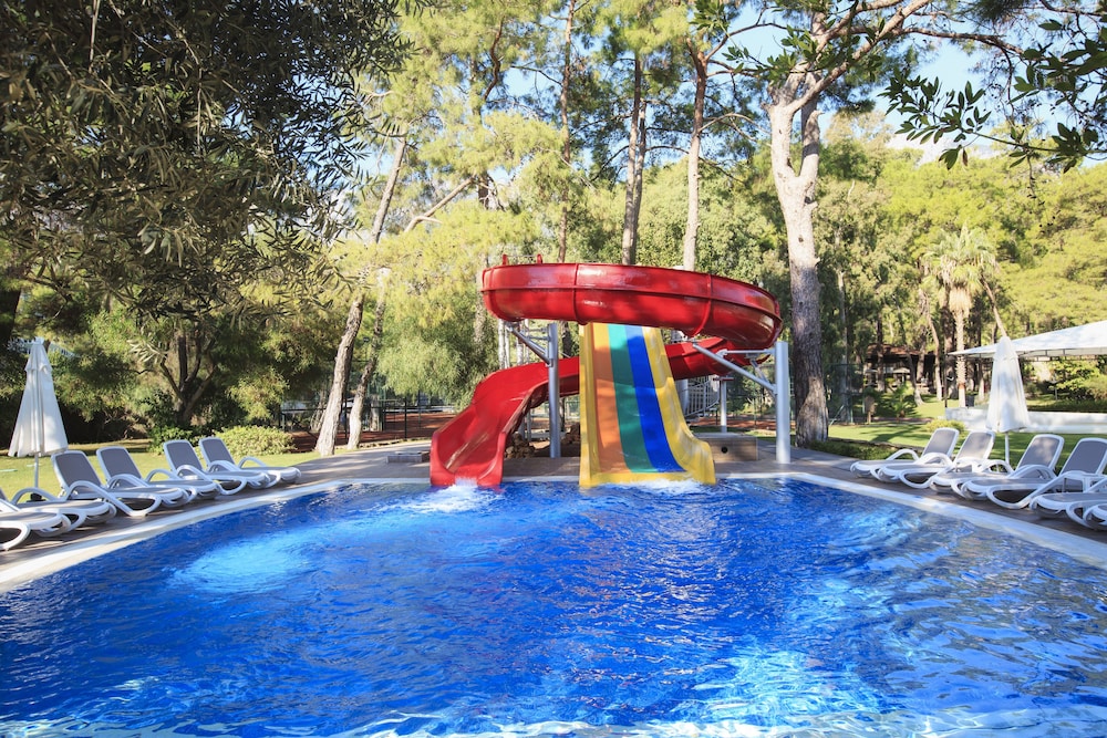 Kimeros Park Holiday Village sijaitsee merenrannalla, ja DinoPark ja Liman Street sijaitsevat 10 minuutin ajomatkan päässä. Tämä all inclusive -tyyppinen lomakeskus sijaitsee 7,4 km:n päässä kohteesta Kemer Merkez Batın ranta ja 7,5 km:n päässä kohteesta Moonlight Beach and Park. Kaikissa 442 huoneessa on ilmastointi, ilmaiset minibaarituotteet sekä LCD-televisio. Jokaisessa huoneessa on parveke. Mukavuuksiin kuuluu satelliittikanavat sekä ilmainen langaton internetyhteys. Huoneissa on oma kylpyhuone, ja sen varusteluun kuuluu suihku, ilmaiset hygieniatuotteet ja hiustenkuivaaja. Käytössäsi on kuivapesula-/pesulapalvelut, ympäri vuorokauden auki oleva vastaanotto ja kielitaitoinen henkilökunta. Asiakkaiden käytössä on lentokenttäkuljetukset (saatavilla ympäri vuorokauden) ilmaiseksi. Voit rentoutua ja hemmotella itseäsi palveluihin kuuluvassa täyden palvelun kylpylässä. Nauti auringosta hotellin yksityisellä rannalla tai kokeile palveluihin kuuluvaa 2 ulkouima-allasta. Tämän lomakeskuksen palveluihin kuuluu muun muassa ilmainen langaton internetyhteys, lastenvahti (lisämaksusta) ja kampaamo. Majoituspaikan ravintola, KİMEROS MAIN RESTAURANT, tarjoaa näkymän puutarhaan; ravintolan erikoisuuksiin kuuluu kansainvälinen keittiö. Palveluihin kuuluu myös ympärivuorokautinen huonepalvelu. Hotelli järjestää ilmaiset kutsut, joilla voit tavata muita asiakkaita. Kutsut järjestetään päivittäin. Jos mielesi tekee raikasta juotavaa, kokeile palveluihin kuuluvaa 5 baaria tai 2 allasbaaria.