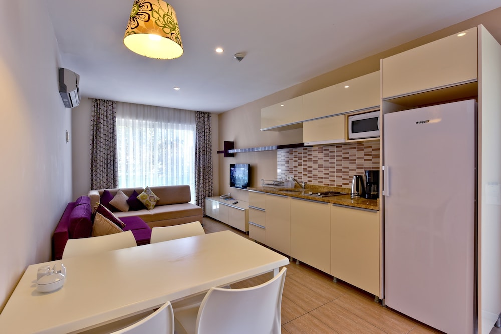 Alanya Aquapark ja Kleopatran ranta sijaitsevat 15 minuutin ajomatkan päässä majoituspaikasta. Tämä huoneistohotelli sijaitsee 0,7 km:n päässä kohteesta Alanyum-ostoskeskus ja 1 km:n päässä kohteesta Atatürkin talo. Tässä majoituspaikassa on 52 viihtyisää ja ilmastoitua huonetta. Huoneiden varusteluun kuuluu muun muassa keittonurkkaus, jossa on liesi ja astianpesukone. Mukavuuksiin kuuluu LCD-televisio ja satelliittikanavat. Käytössäsi on myös ilmainen langaton internetyhteys. Huoneissa on tallelokero ja kahvin-/vedenkeitin. Etäisyydet pyöristetään lähimpään 0,1 mailiin ja kilometriin.