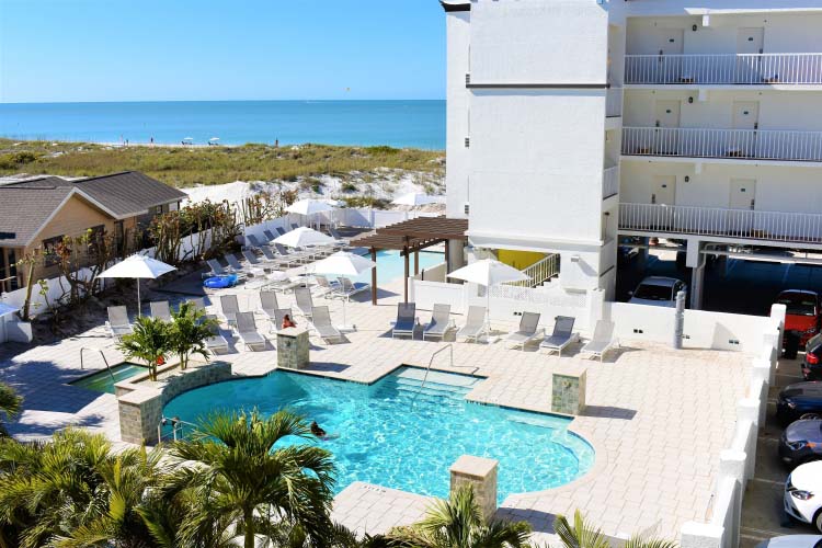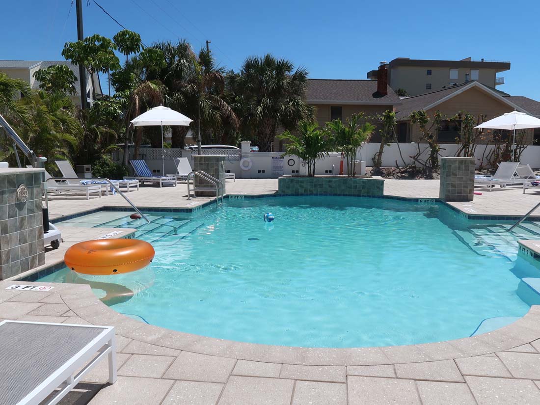 Vain viiden minuutin kävelymatkan päässä on suosittu John's Pass. Siellä on runsaasti kauppoja, baareja ja viihtyisiä ravintoloita. John´s Passista lähtee retkiveneitä. Barefootin vieraiden käytettävissä on pieni, lämmitetty ulkouima-allas. Suosittu trolleybussi, jolla pääsee eri puolille rannikkoa, pysähtyy hotellin lähellä. Huoneissa ei ole keittomahdollisuutta. St. Petersburgiin on noin 18 km. Sieltä löytyy kaikki tarvittava. Palvelumaksu sisältyy hintaan!