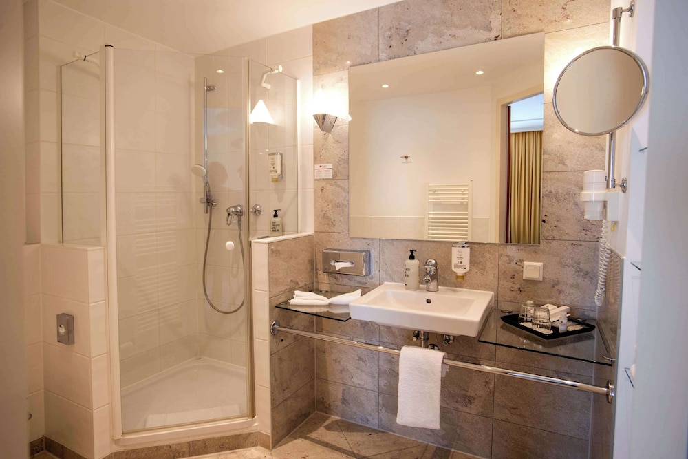 Trabrennbahn Mariendorf sijaitsee 9,4 kilometrin päässä ja Uber Arena 20,4 kilometrin päässä majoituspaikasta. Tämä golfin pelaamiseen soveltuva hotelli sijaitsee 20,9 km:n päässä kohteesta Potsdamer Platz ja 21,4 km:n päässä kohteesta Brandenburgin portti. Kaikissa 174 huoneessa on ilmastointi, jääkaappi sekä minibaari. Mukavuuksiin kuuluu maksuton internetyhteys (langaton ja kiinteä) ja 60-senttinen plasmatelevisio, jossa on satelliittikanavat. Huoneissa on oma kylpyhuone, ja sen varusteluun kuuluu kylpyamme tai suihku, ilmaiset hygieniatuotteet ja hiustenkuivaaja. Varusteluun kuuluu puhelin, tallelokero ja työpöytä. Käytössäsi on ilmainen kiinteä internetyhteys, business center ja express-uloskirjautuminen. Tämä hotelli tarjoaa asiakkailleen 1210 neliömetriä kokoustiloja, joihin kuuluu konferenssikeskus ja 13 kokoushuonetta. Palveluihin kuuluu maksullinen omatoiminen pysäköinti. Voit rentoutua ja hemmotella itseäsi palveluihin kuuluvassa täyden palvelun kylpylässä. Paikan päällä on lisäksi ympäri vuorokauden auki oleva kuntoklubi sekä sauna. Tämän välimerellisen hotellin palveluihin kuuluu myös ilmainen langaton internetyhteys, concierge-palvelut ja hääpalvelut. Theodors, joka on yksi tämän hotellin 2 ravintolasta, tarjoaa herkkuja joka makuun. Halutessasi käytössäsi on myös ympärivuorokautinen huonepalvelu. Baarissa voit nauttia raikasta juotavaa. Maksullinen täysi aamiainen tarjotaan päivittäin klo 6.00–10.30. Hotelstars-unioni määrittää majoituspaikkojen virallisen tähtiluokituksen maassa: Saksa. Tämän majoituspaikan tähtiluokitus on 4 stars. Seuraavat tilat on suljettu maanantaisin, tiistaisin, perjantaisin, lauantaisin ja sunnuntaisin: