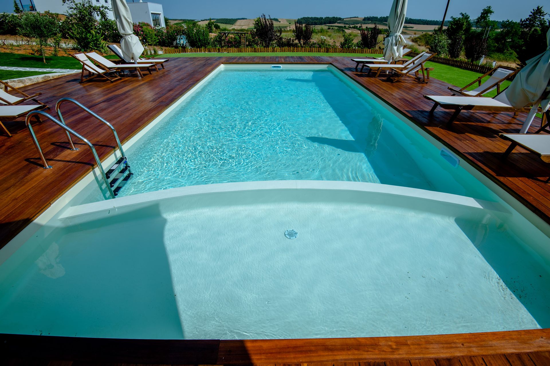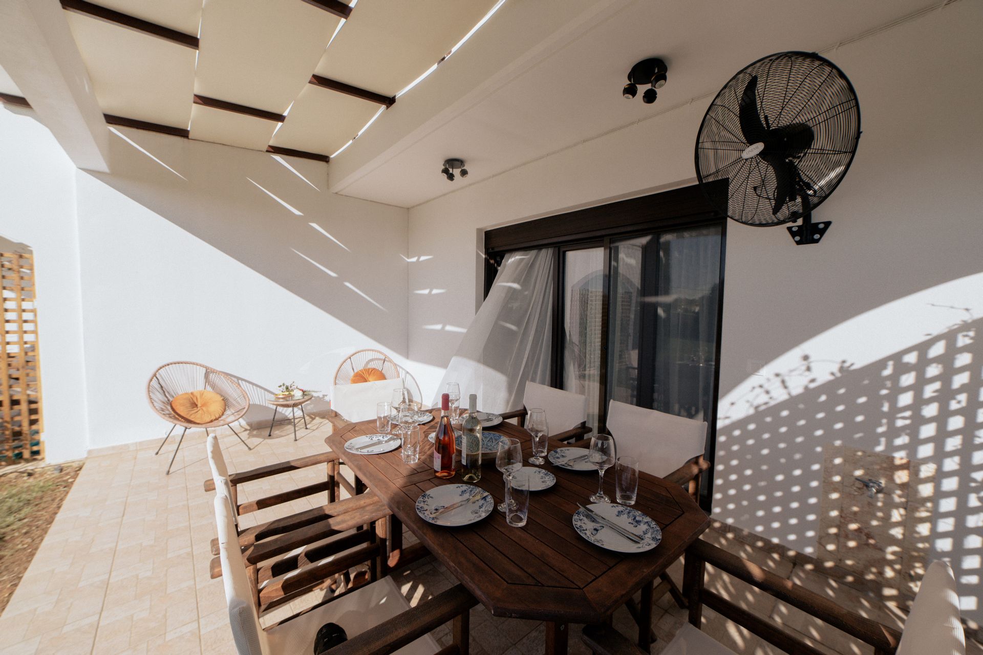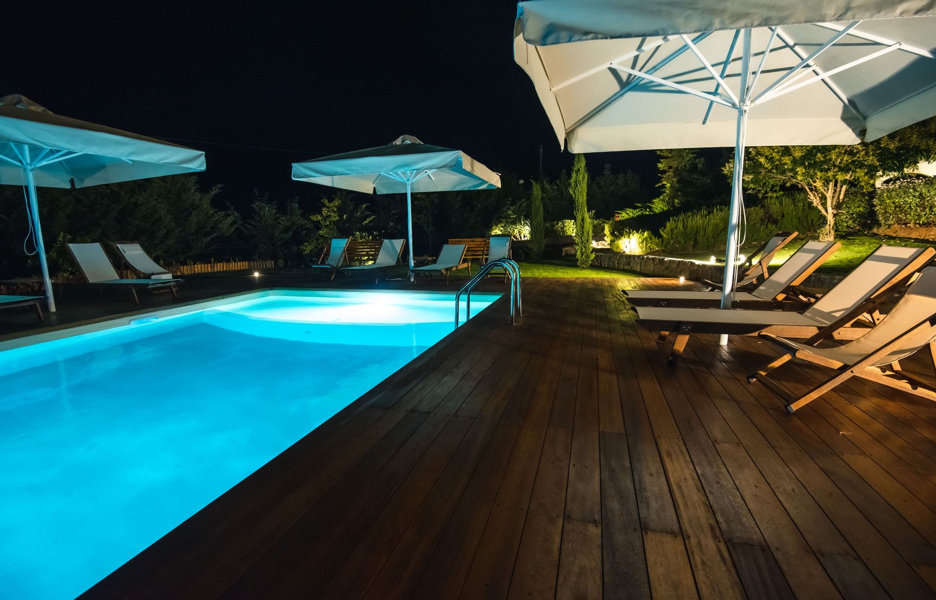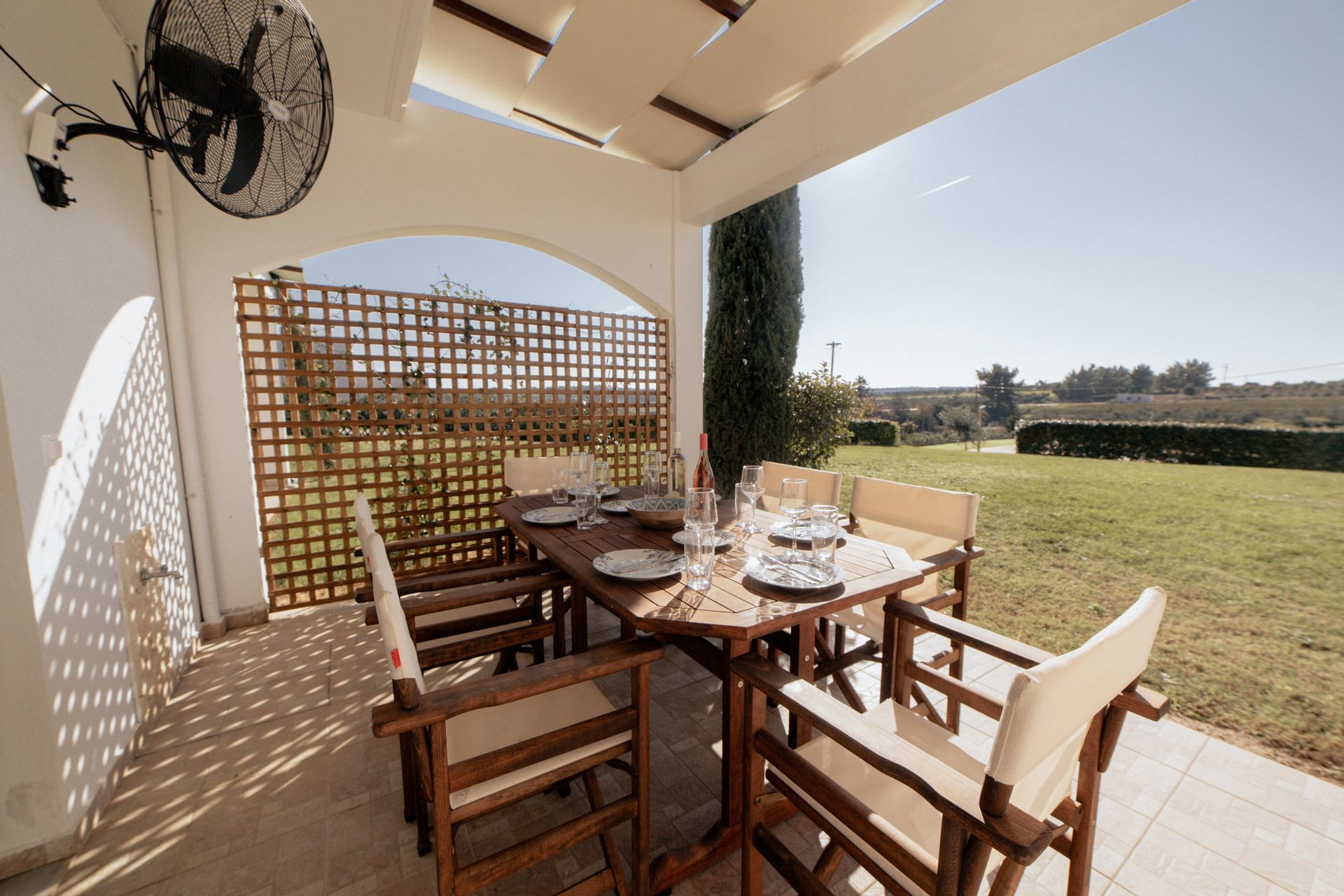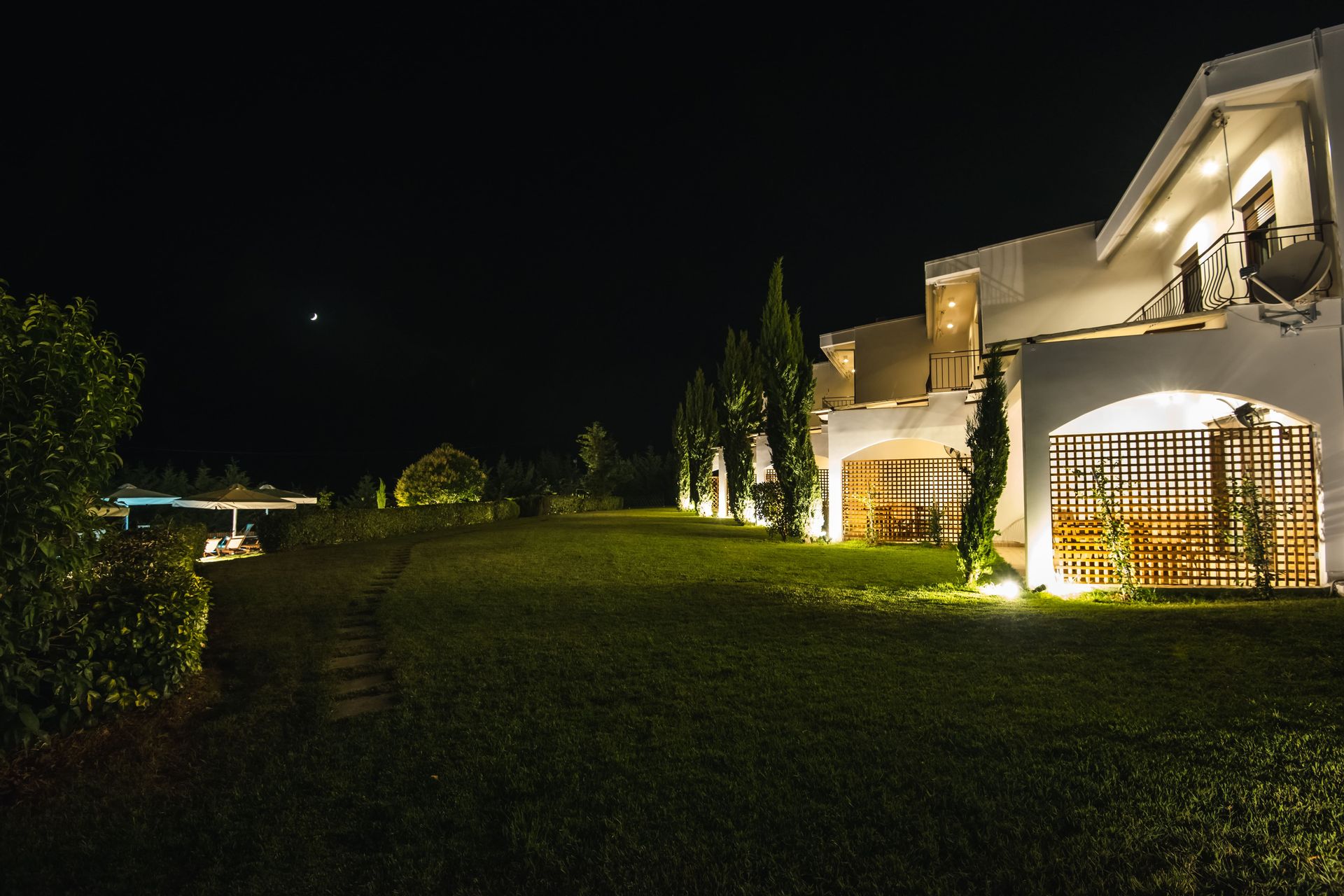 The complex consists of five 80sqm villas, with pool, garden, and parking. Each Villa hosts up to 7 persons and is separated into two floors, offering privacy and company moments at the same time.