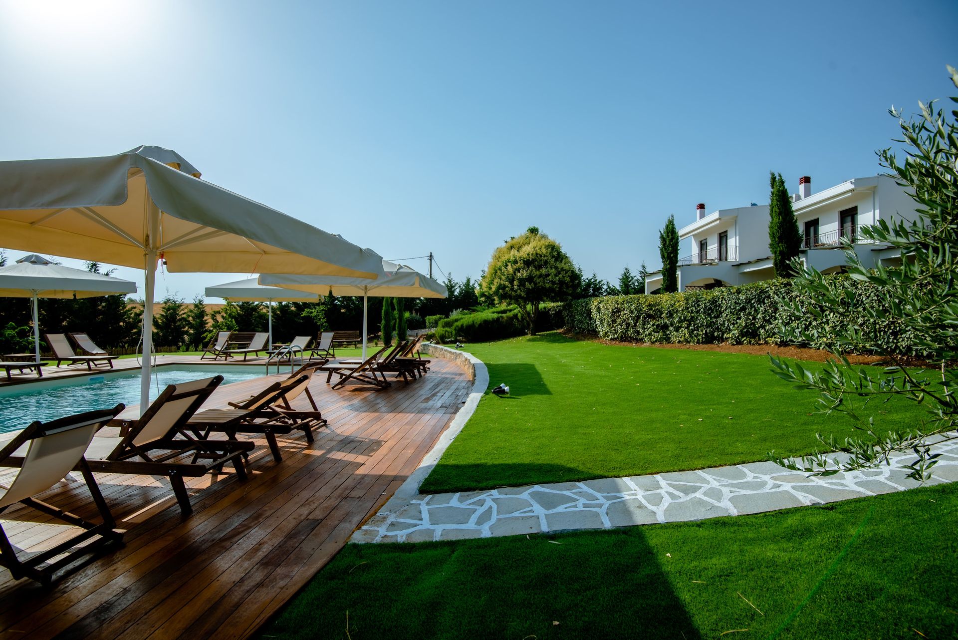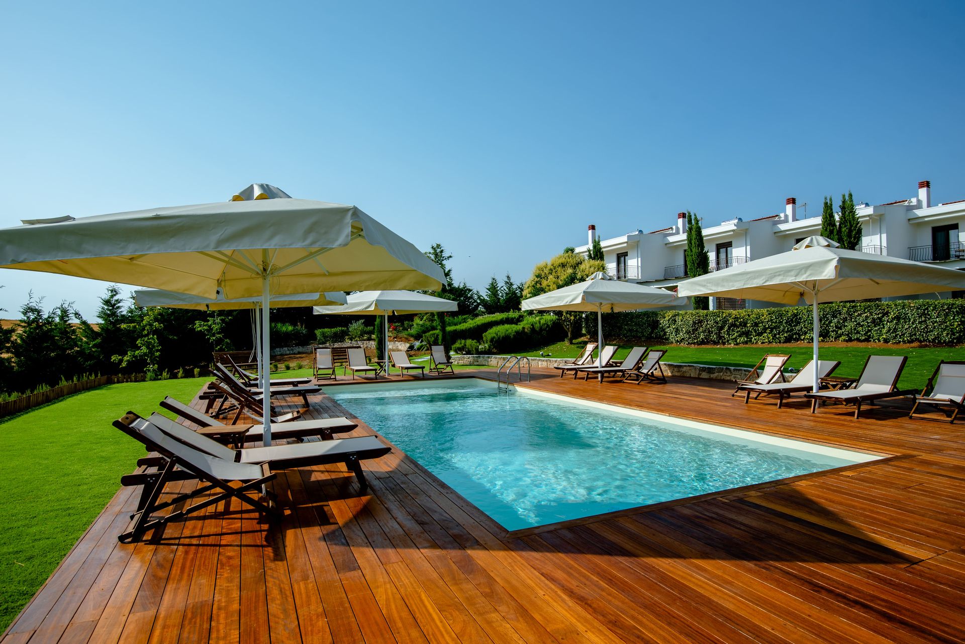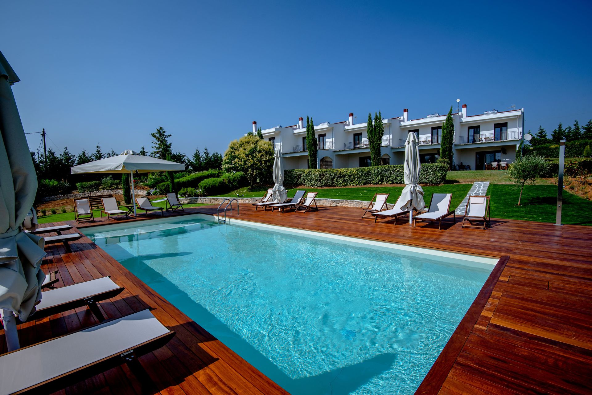 Calas Villas is a unique place, ready to welcome you in Sani, Halkidiki. Built in a quiet area, only 6’ by car from Sani Beach, the residence offers relaxation and calmness, making your vacation in Greece unforgettable.