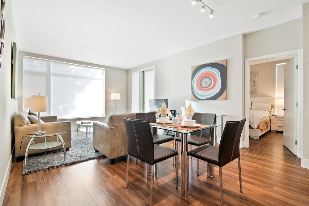 Global Luxury Suites at Mountain View sijaitsee keskustassa, ja Stanfordin yliopisto ja Shoreline Amphitheatre 10 minuutin ajomatkan päässä. Tämä huoneisto sijaitsee 12,9 km:n päässä kohteesta Levi's Stadium ja 16,4 km:n päässä kohteesta San Franciscon lahti. Tässä majoituspaikassa on 2 viihtyisää huonetta. Huoneiden varusteluun kuuluu muun muassa keittiö, jossa on täysikokoinen jääkaappipakastin ja uuni. Mukavuuksiin kuuluu 42-tuumainen taulutelevisio ja kaapelikanavat. Käytössäsi on myös ilmainen langaton internetyhteys. Varusteluun kuuluu työpöytä, oleskelualue ja puhelin (ilmaiset paikallispuhelut). Etäisyydet pyöristetään lähimpään 0,1 mailiin ja kilometriin.