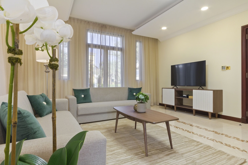 Burj al-arab ja Mall of the Emirates sijaitsevat 15 minuutin ajomatkan päässä majoituspaikasta. Tämä huvila sijaitsee 9,6 km:n päässä kohteesta Marinan ranta ja 9,1 km:n päässä kohteesta Dubai Marinan ostoskeskus. Tämä yksilöllisesti sisustettu huvila tarjoaa käyttöösi yksityisen uima-altaan ja LED-television. Huoneessa on parveke. Keittiössä on täysikokoinen jääkaappipakastin, uuni ja liesi. Ilmainen langaton internetyhteys pitää sinut yhteydessä, ja kaapelikanavat viihdyttävät yöpymisen aikana. Etäisyydet pyöristetään lähimpään 0,1 mailiin ja kilometriin.