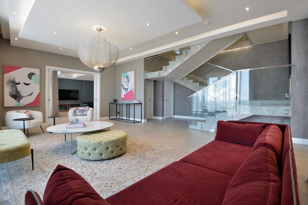 Davinci Hotel And Suites On Nelson Mandela Square sijaitsee keskustassa, ja Sandton City Mall sijaitsee 1 minuutin ajomatkan päässä ja Melrose Arch Shopping Centre (ostoskeskus) 6 minuutin ajomatkan päässä. Tämä perheystävällinen hotelli sijaitsee 12 km:n päässä kohteesta Montecasino ja 21,4 km:n päässä kohteesta Gold Reef City Casino. Kaikkien 166 huoneen varusteluun kuuluu iPod-telakointiasema ja minibaari. Mukavuuksiin kuuluu plasmatelevisio ja satelliittikanavat. Käytössäsi on myös ilmainen langaton internetyhteys. Omasta kylpyhuoneesta löytyy erillinen kylpyamme ja suihku, syvä kylpyamme ja sadesuihkupää. Varusteluun kuuluu puhelin, tallelokero ja työpöytä. Etäisyydet pyöristetään lähimpään 0,1 mailiin ja kilometriin.