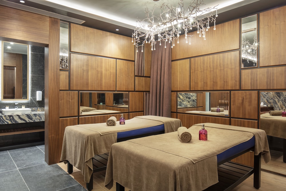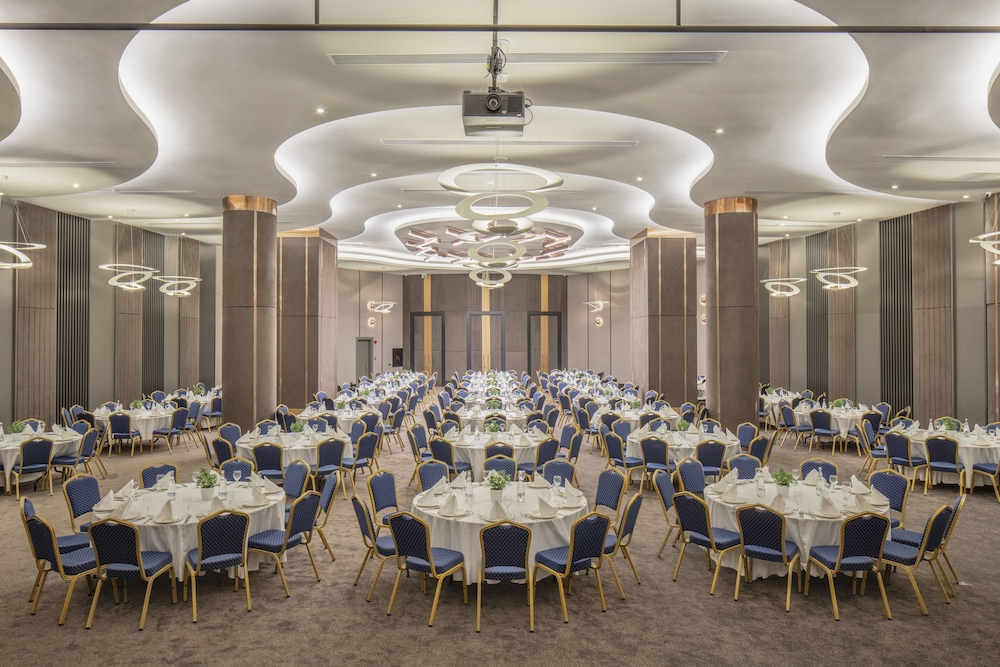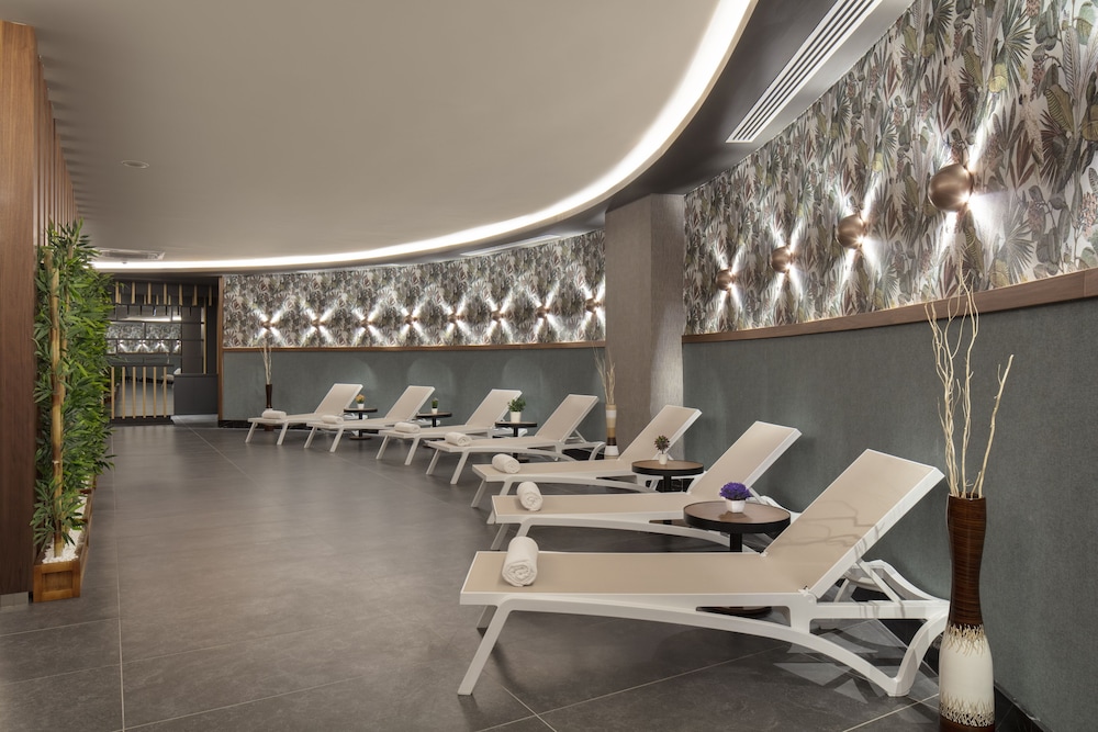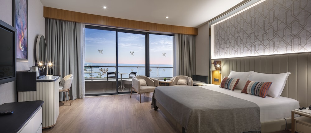 Mylome Luxury Hotel & Resort - Ultra All Inclusive sijaitsee kävelysillalla, ja Water Planet -vesipuisto sijaitsee 5 minuutin kävelymatkan päässä ja Alaran basaari 11 minuutin kävelymatkan päässä majoituspaikasta. Tämä all inclusive -tyyppinen majoituspaikka sijaitsee 29 km:n päässä kohteesta Kleopatran ranta ja 32 km:n päässä kohteesta Alanya Aquapark. Kaikissa 454 huoneessa on ilmastointi, iPod-telakointiasema sekä ilmaiset minibaarituotteet. Jokaisessa huoneessa on parveke. Mukavuuksiin kuuluu 45-tuumainen LCD-televisio ja satelliittikanavat. Käytössäsi on myös ilmainen langaton internetyhteys. Huoneissa on oma kylpyhuone, ja sen varusteluun kuuluu suihku, bidee ja hiustenkuivaaja. Etäisyydet pyöristetään lähimpään 0,1 mailiin ja kilometriin.