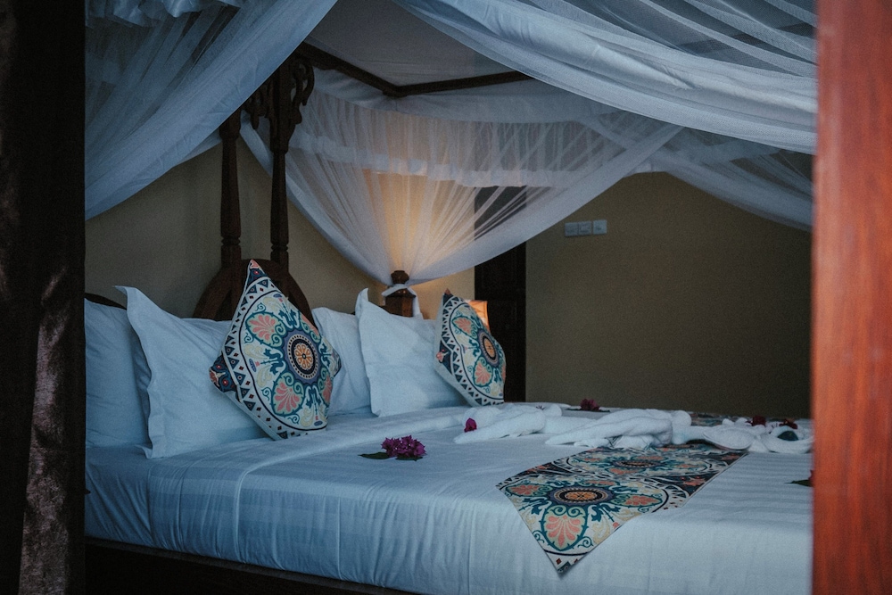 Sunny Palms Beach Bungalows sijaitsee kansallispuistossa, ja Uroan ranta sijaitsee 1 minuutin ajomatkan päässä ja Marumbin ranta 9 minuutin ajomatkan päässä majoituspaikasta. Tämä rannalla sijaitseva lomakeskus sijaitsee 14,7 km:n päässä kohteesta Kiwengwa Beach (ranta) ja 46,9 km:n päässä kohteesta Paje Beach (ranta). Kaikissa 24 huoneessa on ilmastointi ja taulutelevisio. Jokaisessa huoneessa on parveke. Käytössäsi on kaapelikanavat ja ilmainen internetyhteys (langaton ja kiinteä). Kylpyhuoneesta löytyy bidee ja erillinen kylpyamme ja suihku, jossa on sadesuihkupää. Etäisyydet pyöristetään lähimpään 0,1 mailiin ja kilometriin.