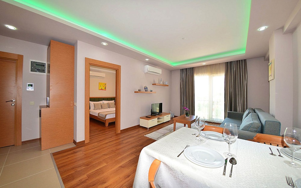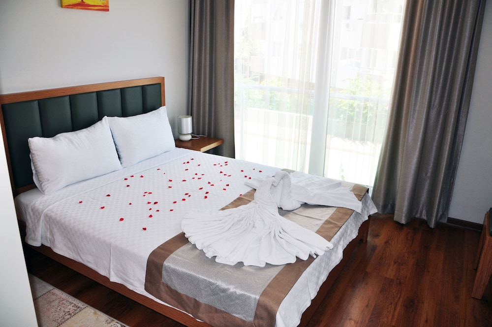 The Suites sijaitsee Stripin varrella, ja Gökdere Valley ja Konyaaltin ranta sijaitsevat 5 minuutin ajomatkan päässä. Tämä huoneisto sijaitsee 29 km:n päässä kohteesta Laran ranta ja 6 km:n päässä kohteesta Konyaaltin rantapuisto. Tässä majoituspaikassa on 62 viihtyisää huonetta. Huoneiden varusteluun kuuluu muun muassa keittiö, jossa on täysikokoinen jääkaappi/pakastin ja liesi. Jokaisessa huoneessa on parveke. Mukavuuksiin kuuluu LCD-televisio ja satelliittikanavat. Käytössäsi on myös ilmainen langaton internetyhteys. Huone siivotaan kerran viikossa. Huoneissa on tallelokero ja työpöytä. Etäisyydet pyöristetään lähimpään 0,1 mailiin ja kilometriin.