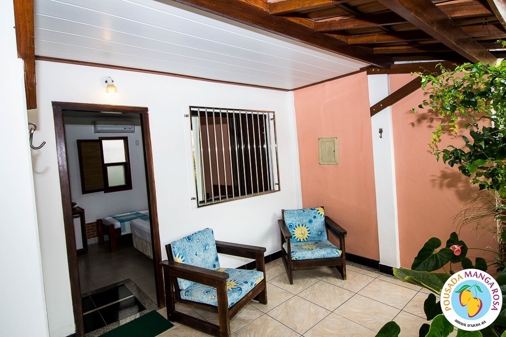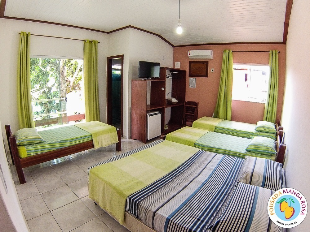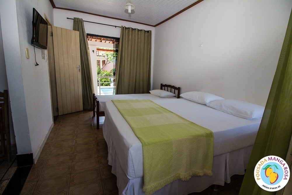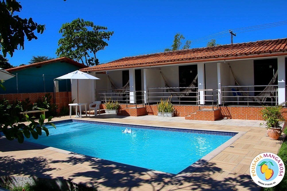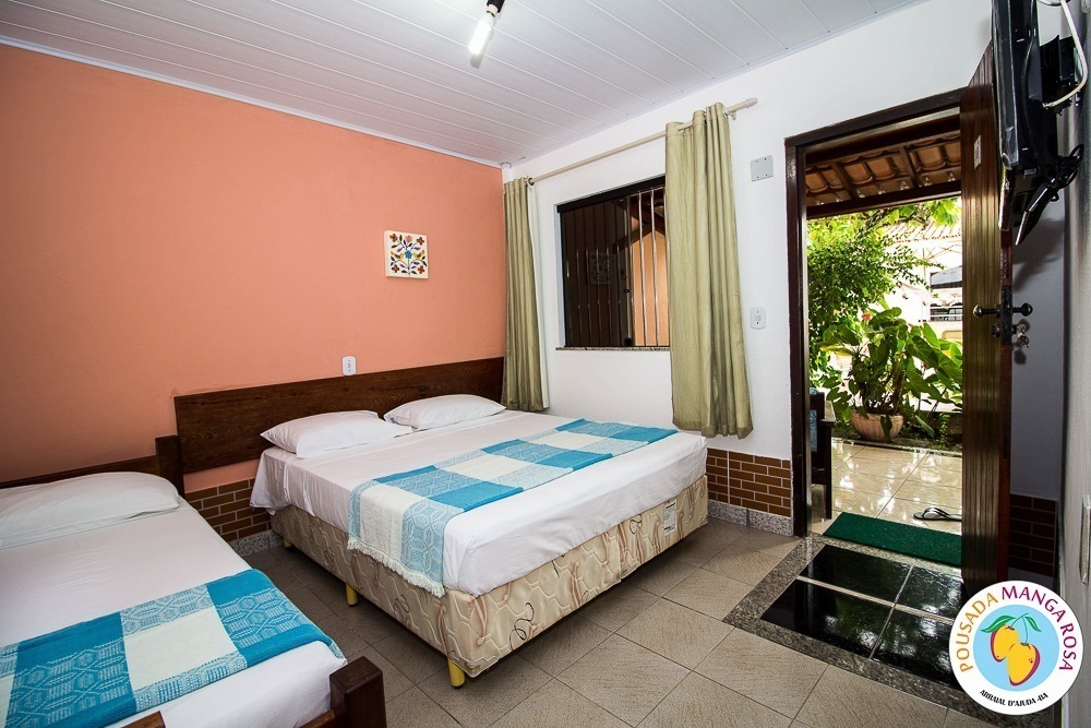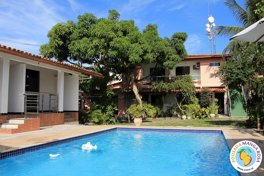 Pousada Manga Rosa is located in Fábio Messias Nobre, Nº172 Street, Street Mucugê (Beach Street) in the center of the Arraial d'Ajuda, and near the historic center and the craft square and also everything you need : Restaurants, bars, pharmacy, supermarket, shopping malls, boutiques, about 300 meters from the colors alley, and 500 meters from the Morocha Club and 900 meters from Mucugê Beach and Water Park. Here you will find comfort and fun your vacation deserve. A quiet, safe and cozy atmosphere, a lush garden and a well-lined area. In a quiet, safe and cozy atmosphere, with a lush garden and a well-wooded area. Pousada has 15 apartments, equipped with air conditioning, TV, minibar and balcony with network. We have apartments for 2, 3, 4 and 5 people, and also a larger apartment for a group of up to 6 people (apartment room and living room with 2 bathrooms and air conditioning in the 2 rooms, TV and refrigerator) The Pousada Own: It has indoor parking . Wireless Internet. 8x4 meters pool. We serve a delicious breakfast with large varieties, juices, fruits, cold breads, breads, to start a well-disposed day to enjoy as much as Arraial d'aid offers.