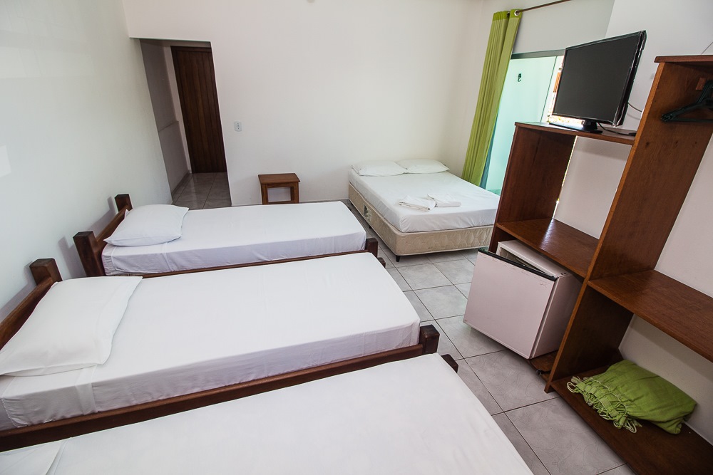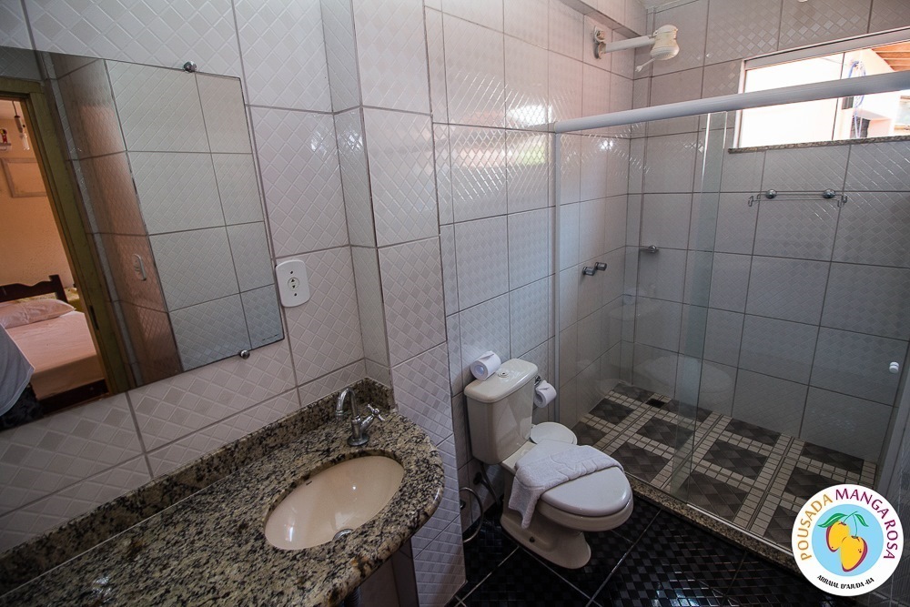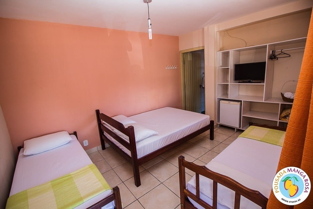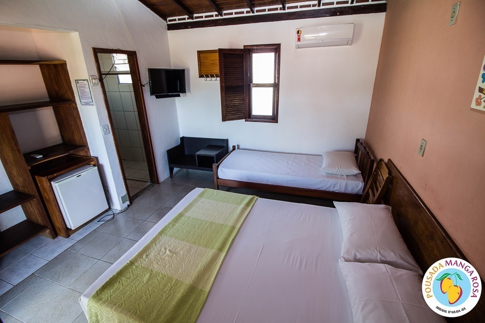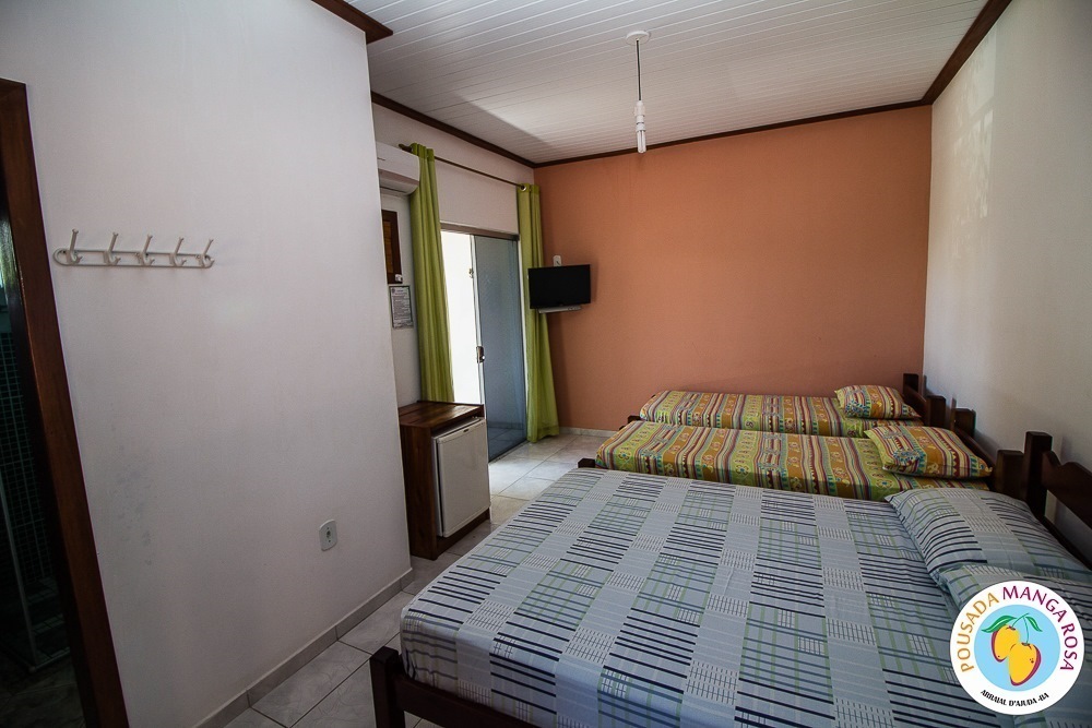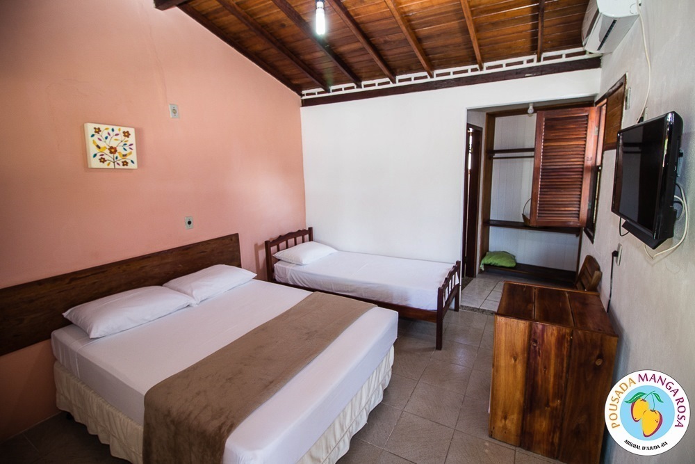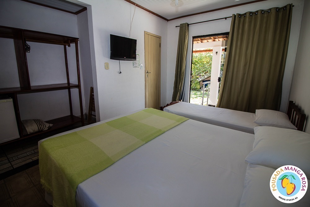 Pousada Manga Rosa is located in Fábio Messias Nobre, Nº172 Street, Street Mucugê (Beach Street) in the center of the Arraial d'Ajuda, and near the historic center and the craft square and also everything you need : Restaurants, bars, pharmacy, supermarket, shopping malls, boutiques, about 300 meters from the colors alley, and 500 meters from the Morocha Club and 900 meters from Mucugê Beach and Water Park. Here you will find comfort and fun your vacation deserve. A quiet, safe and cozy atmosphere, a lush garden and a well-lined area. In a quiet, safe and cozy atmosphere, with a lush garden and a well-wooded area. Pousada has 15 apartments, equipped with air conditioning, TV, minibar and balcony with network. We have apartments for 2, 3, 4 and 5 people, and also a larger apartment for a group of up to 6 people (apartment room and living room with 2 bathrooms and air conditioning in the 2 rooms, TV and refrigerator) The Pousada Own: It has indoor parking . Wireless Internet. 8x4 meters pool. We serve a delicious breakfast with large varieties, juices, fruits, cold breads, breads, to start a well-disposed day to enjoy as much as Arraial d'aid offers.