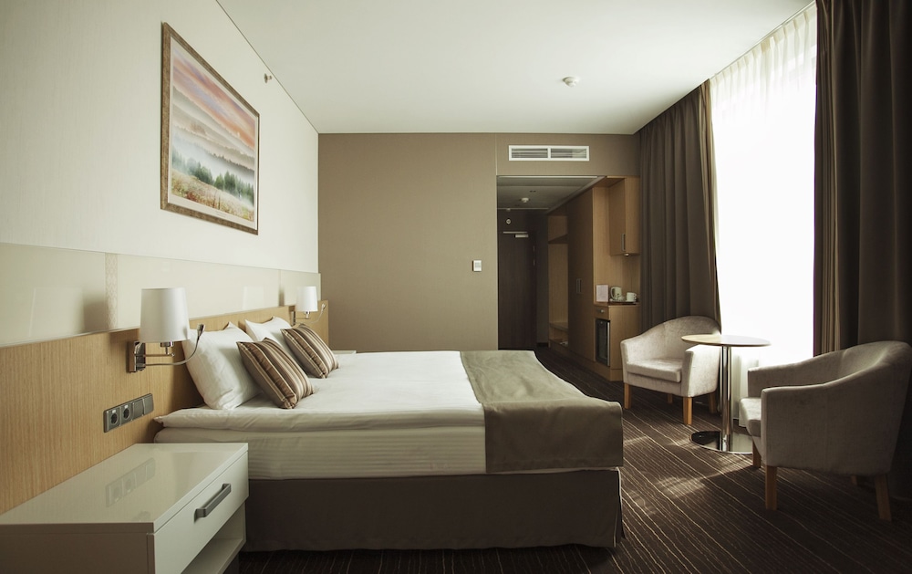 Voitonpuisto ja Valko-Venäjän Suuren isänmaallisen sodan historian valtionmuseo sijaitsevat 15 minuutin kävelymatkan päässä majoituspaikasta. Tämä kylpylälomalle soveltuva hotelli sijaitsee 1,9 km:n päässä kohteesta Minskin urheilupalatsi ja 1,9 km:n päässä kohteesta Zaslavskyn juutalainen muistomerkki. Kaikissa 256 huoneessa on ilmastointi ja LCD-televisio. Mukavuuksiin kuuluu satelliittikanavat sekä ilmainen langaton internetyhteys. Kylpyhuoneesta löytyy suihkun ja kylpyammeen yhdistelmä, ilmaiset hygieniatuotteet ja hiustenkuivaaja. Varusteluun kuuluu puhelin, tallelokero ja työpöytä. Etäisyydet pyöristetään lähimpään 0,1 mailiin ja kilometriin.