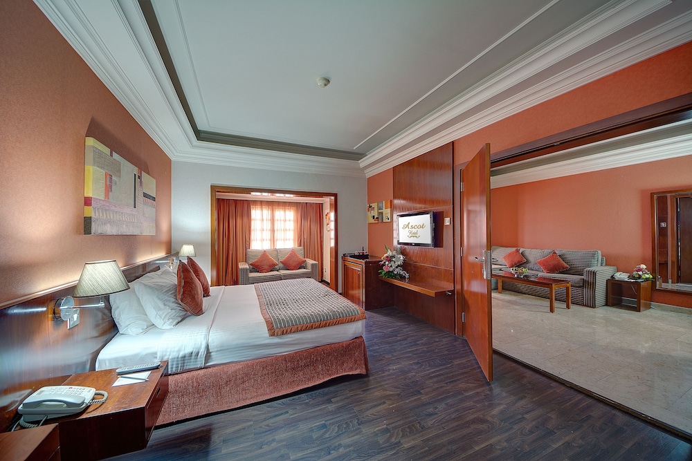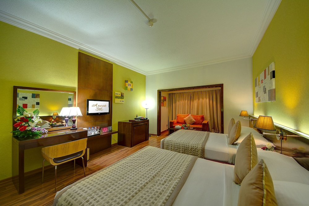 Ascot Hotel sijaitsee keskustassa, ja Dubain risteilyterminaali ja Dubain poukama 5 minuutin ajomatkan päässä. Tämä hotelli sijaitsee 5,1 km:n päässä kohteesta Dubai World Trade Centre ja 5,4 km:n päässä kohteesta Kultabasaari. Kaikkien 80 huoneen varusteluun kuuluu minibaari ja LCD-televisio. Mukavuuksiin kuuluu satelliittikanavat sekä ilmainen langaton internetyhteys. Huoneissa on oma kylpyhuone, ja sen varusteluun kuuluu suihku, ilmaiset hygieniatuotteet ja hiustenkuivaaja. Varusteluun kuuluu puhelin, tallelokero ja työpöytä. Etäisyydet pyöristetään lähimpään 0,1 mailiin ja kilometriin.