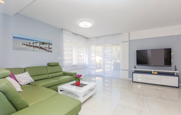 This luxurious semi-detached house is located in Malinska, on the island of Krk. A spacious living room with adjoining kitchen awaits you on the ground floor. Directly from this area there is access to the garden and the sun terrace with heated outdoor pool. On the first floor you will find the bedrooms, while the main advantage of this beautiful house is actually on the second floor. This is because an attractive roof terrace with a small outdoor kitchen extends over the entire floor. When you're not splashing around in the pool, you'll spend most of your time here enjoying the beautiful moments with family or friends and a wonderful view of the sea and the town of Malinska. An ideal place to relax from the stress and accelerated pace of everyday life. There are public facilities nearby: Shops, souvenir shops, pharmacy, restaurants and bars. If you fancy a swim in the sea, the nearby beaches are within easy walking distance. Malinska is an interesting island village with many facilities for an unforgettable holiday. Discover the rich history and cultural heritage of the island. Enjoy an active holiday with wake boarding in Punta or on the karting track in Krk. Relax with romantic walks along beautiful promenades, visit viewpoints and explore the many hiking and cycling trails that connect the island. Visit the other places on the island, such as Vrbnik, and taste the famous Vrbnicka Zlahtina wine. There are several wineries to discover. There is also the small island of Koljun with a Franciscan monastery, whose monks are the only inhabitants of the island. Baska is home to one of the most beautiful beaches in the northern Adriatic.