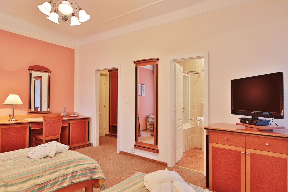 Villa Savoy Spa Park Hotel sijaitsee kansallispuistossa, ja Slavkovskin luonnonpuisto sijaitsee 1 minuutin kävelymatkan päässä ja Colonnade by the Singing Fountain 6 minuutin kävelymatkan päässä majoituspaikasta. Pylväikkökylpylä sijaitsee 0,5 kilometrin ja Neitsyt Marian kirkko 0,7 kilometrin päässä tästä 4 tähden hotellista. Kaikkien 36 huoneen varusteluun kuuluu minibaari ja LCD-televisio. Mukavuuksiin kuuluu kaapelikanavat sekä ilmainen langaton internetyhteys. Huoneissa on yksityinen kylpyhuone, ja sen varusteluun kuuluu kylpyamme tai suihku, ilmaiset hygieniatuotteet ja hiustenkuivaaja. Varusteluun kuuluu puhelin, tallelokero ja työpöytä. Käytössäsi on ilmainen kiinteä internetyhteys, tietokonepiste ja ilmaiset sanomalehdet aulassa. Käytössäsi on lentokenttäkuljetukset. Jos saavut autolla, voit pysäköidä helposti, sillä maksullinen omatoiminen pysäköinti kuuluu myös palveluihin. Voit rentoutua ja hemmotella itseäsi palveluihin kuuluvassa täyden palvelun kylpylässä. Paikan päällä on lisäksi sauna sekä polkupyörien vuokraus. Tämän hotellin palveluihin kuuluu muun muassa ilmainen langaton internetyhteys, concierge-palvelut ja lahjatavaraliikkeitä/lehtikioskeja. Hotellin ravintola on hyvä paikka lounaan ja illallisen nauttimiseen. Palveluihin kuuluu myös kahvila ja huonepalvelu (rajoitettuina aikoina). Baarissa voit nauttia raikasta juotavaa. Ilmainen buffetaamiainen tarjoillaan päivittäin. Hotelstars-unioni määrittää majoituspaikkojen virallisen tähtiluokituksen maassa: Tšekki. Tämän majoituspaikan tähtiluokitus on 4 stars.