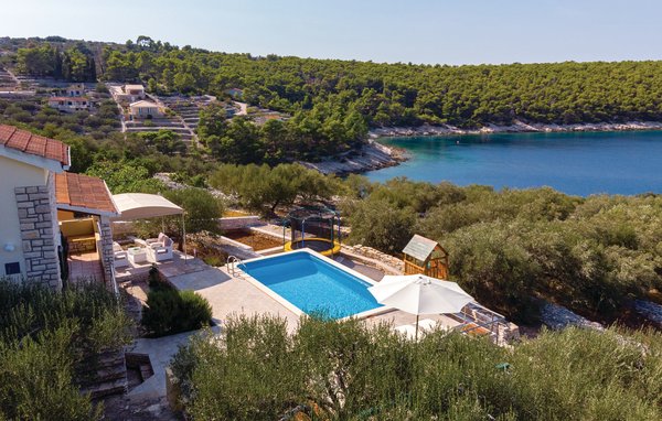 This beautiful holiday home is situated on a hillside in Tankaraca Bay, from where the sea stretches like a blue carpet as far as the island of Hva...