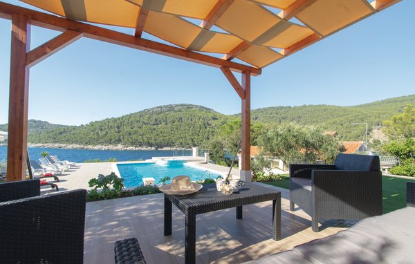 This pretty and simply furnished vacation home is located directly by the sea and is ideal for a family. At this house in Poplat bay you are surrounded by the chirping of crickets and lots of birdsong. The rocky beach and access to the sea are not very steep. Enjoy the surf and tranquility on the beautiful terrace in front of the house. The owner also owns house CDS392 on the same property. Guests of CDS391-392 share the 60 m² seawater pool, it is located between the houses. So several families or a group of friends can spend a vacation together.