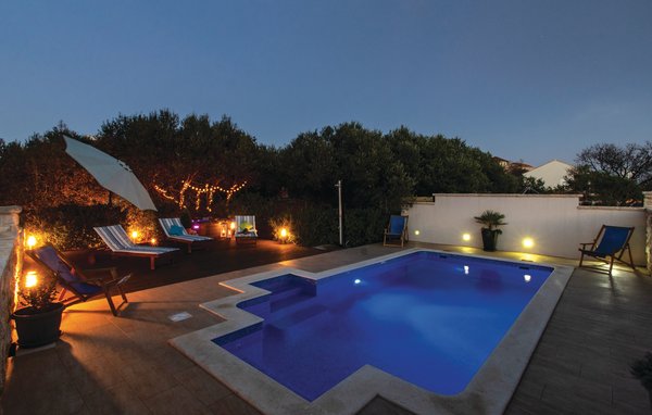 In the southern part of the Adriatic Sea, on the idyllic island of Korcula, lies this functionally furnished vacation home. In the fenced yard, which covers an area of 1000 m2, in addition to the pool, there are various entertainment facilities for the little ones. A soothing bubble awaits you in the whirlpool, next to which there is another one for three people. The house consists of several floors: basement, first floor, second floor and attic. In the attic, where there are also two bedrooms, the roof slope reaches 40cm. Apart from the total of 6 bedrooms, there is also a kitchen, living room, dining room, bathroom and a common room, which is located in the basement and is equipped with a pool table and a dartboard. It is the perfect place for evening socializing with friends. Delicious dishes can also be prepared at the grill and the balmy summer evenings can be enjoyed. The island of Korcula is a very popular destination because of its rugged coastline with many hidden bays and the blue sea. You should definitely reserve a part of your vacation for exploring the island with its interesting history, which the locals try to preserve with various customs from year to year. Very famous is also the Moreska knight play, which attracts many spectators because of its attractive performance. Visit the island, enjoy the magic of nature and mild climate as well as rich cuisine. In the northern part is the town of the same name Korcula. It is famous for its old town built in the shape of a fishbone.