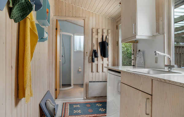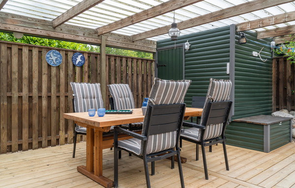 Here you can vacation in a cozy and well furnished cottage, located near Nysted on Lolland. The house awaits you bright and friendly and is nicely furnished. On the covered terrace, which is connected to the enclosed garden, you can enjoy meals in any weather. The house is located in a quiet area, with many animals, often deer come to visit ind en garden. The beautiful bathing beach with associated jetty can be reached on foot from here. The harbor of Nysted is visited by sailors all year round, here are several restaurants and cafes that serve delicious dishes.