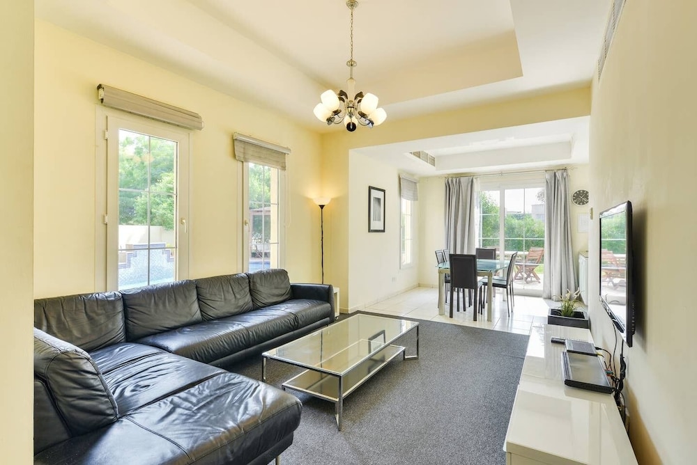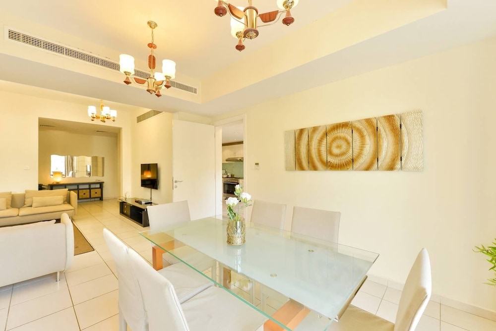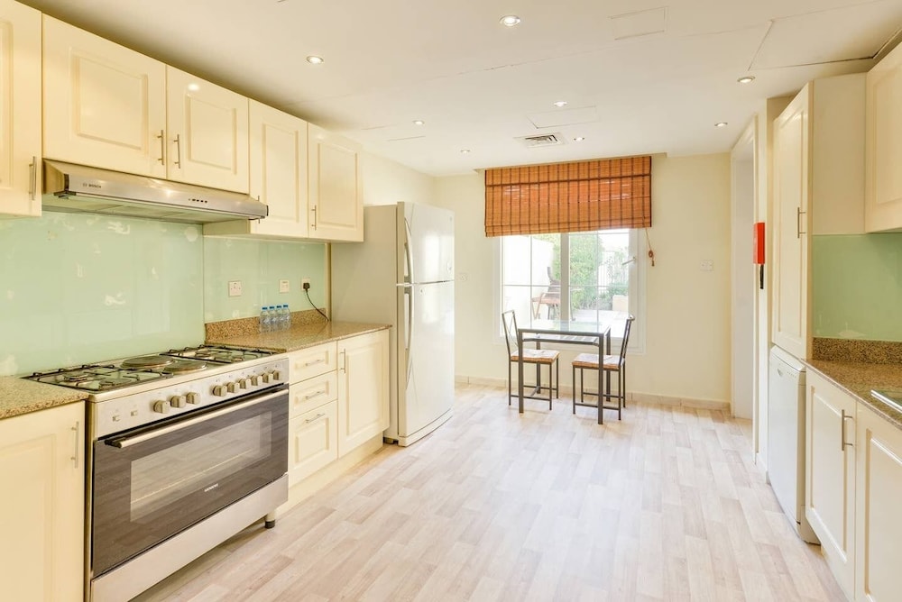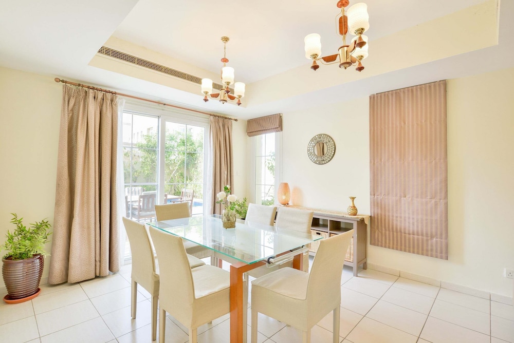 Mall of the Emirates ja Ibn Battuta Mall (ostoskeskus) sijaitsevat 10 minuutin ajomatkan päässä. Tämä huvila sijaitsee 9,9 km:n päässä kohteesta Marinan ranta ja 12,2 km:n päässä kohteesta Burj al-arab. Tässä majoituspaikassa on 3 viihtyisää ja ilmastoitua huonetta. Huoneiden varusteluun kuuluu muun muassa keittiö, jossa on täysikokoinen jääkaappipakastin ja uuni. Jokaisessa huoneessa on parveke tai terassi. Mukavuuksiin kuuluu taulutelevisio ja satelliittikanavat. Käytössäsi on myös ilmainen langaton internetyhteys. Varusteluun kuuluu puhelin, tallelokero ja mikroaaltouuni. Etäisyydet pyöristetään lähimpään 0,1 mailiin ja kilometriin.