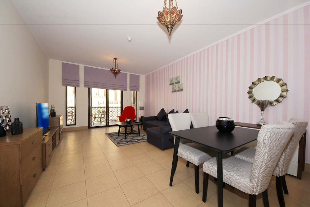 Dubai Mall ja Dubai Fountain sijaitsevat 15 minuutin kävelymatkan päässä. Tämä huoneisto sijaitsee 2,8 km:n päässä kohteesta Burj Khalifa ja 4,9 km:n päässä kohteesta Dubai World Trade Centre. Tämä ilmastoitu huoneisto tarjoaa käyttöösi keittiö, jossa on jääkaappi ja uuni. Huoneessa on parveke. 40-tuumainen LCD-televisio, jossa on kaapelikanavat, tarjoaa viihdykettä ja ilmainen langaton internetyhteys takaa, että voit pysyä yhteydessä. Mukavuuksiin kuuluu työpöytä, mikroaaltouuni ja siivouspalvelu rajoitettuina aikoina. Etäisyydet pyöristetään lähimpään 0,1 mailiin ja kilometriin.