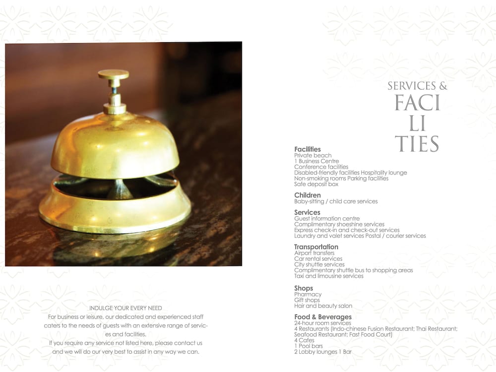 Käytössäsi on business center, express-uloskirjautuminen ja kuivapesula-/pesulapalvelut. Tämä hotelli tarjoaa asiakkailleen seuraavat kokoustilat: konferenssikeskus ja 4 kokoushuonetta. Asiakkaiden käytössä on lentokenttäkuljetukset (saatavilla ympäri vuorokauden) ilmaiseksi. Täyden palvelun kylpylässä voit rentoutua muun muassa hieronnassa. Paikan päällä on lisäksi kuntoklubi, ulkouima-allas sekä sauna. Tämän hotellin palveluihin kuuluu ilmainen langaton internetyhteys, concierge-palvelut ja kampaamo. Tämä hotelli tarjoaa asiakkailleen 6 ravintolaa. Palveluihin kuuluu myös ympärivuorokautinen huonepalvelu ja kahvila. Käytössäsi on allasbaari sekä 2 baaria.Majoituspaikka veloittaa seuraavat paikan päällä suoritettavat maksut. Maksuihin saattaa sisältyä sovellettavat verot: