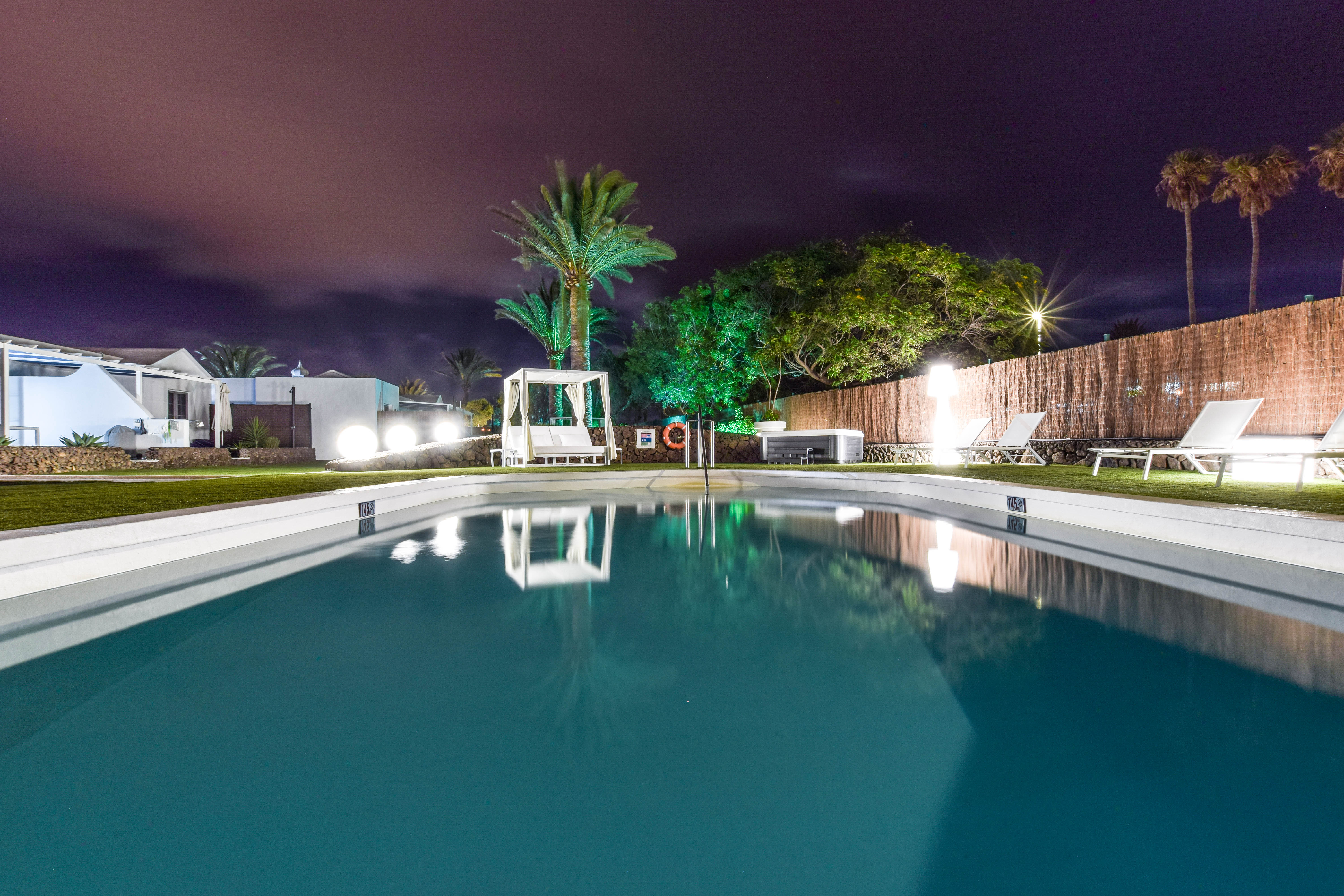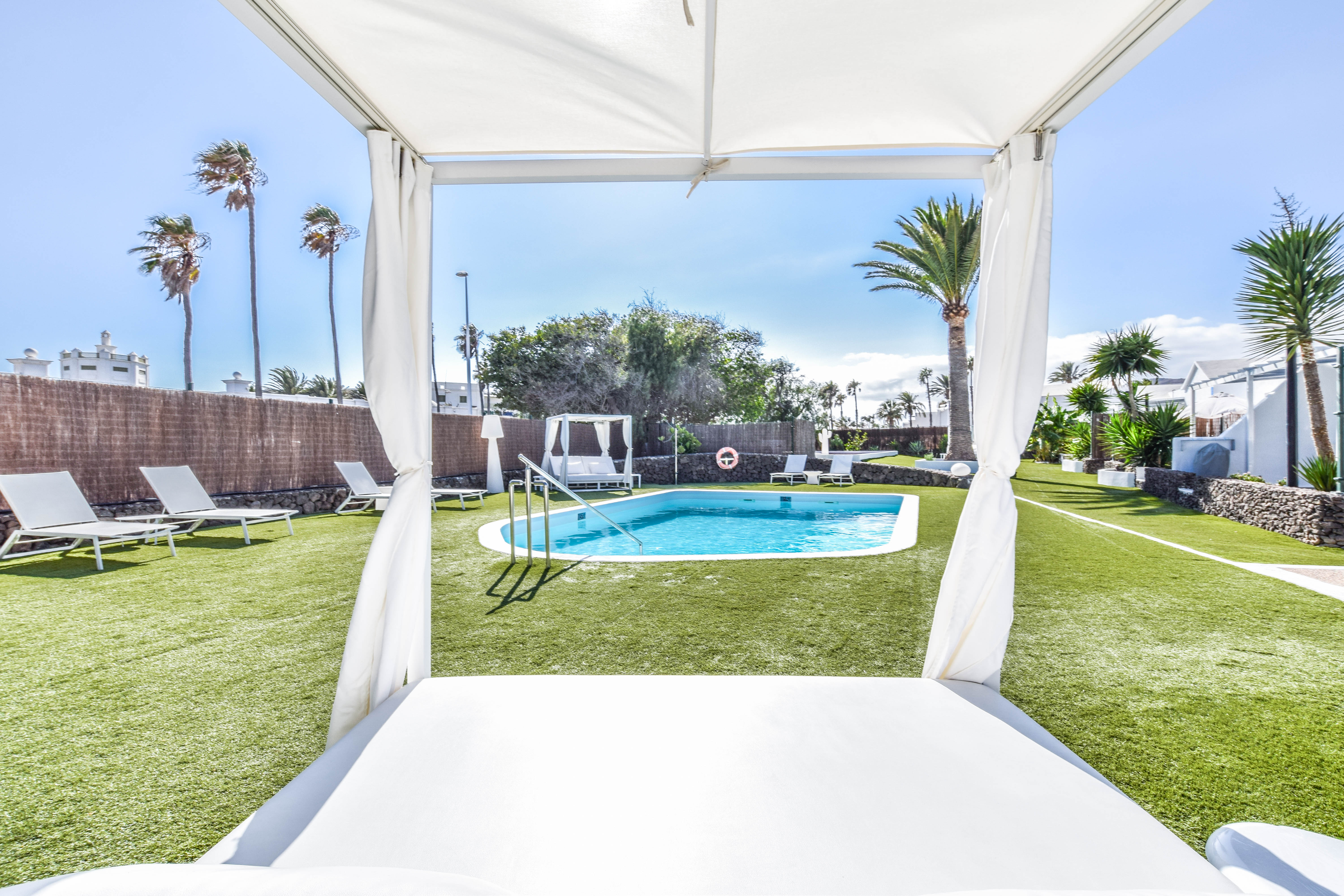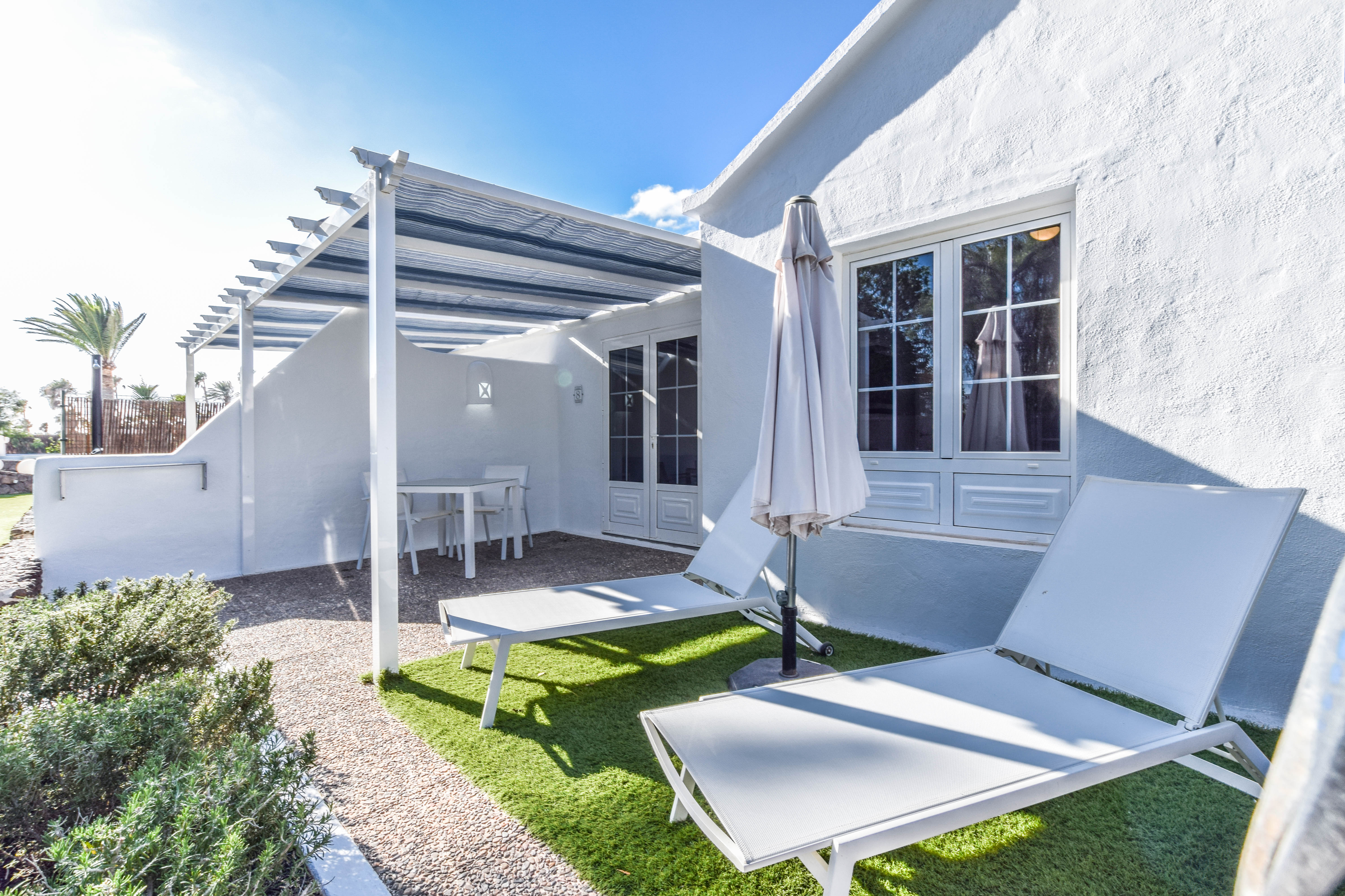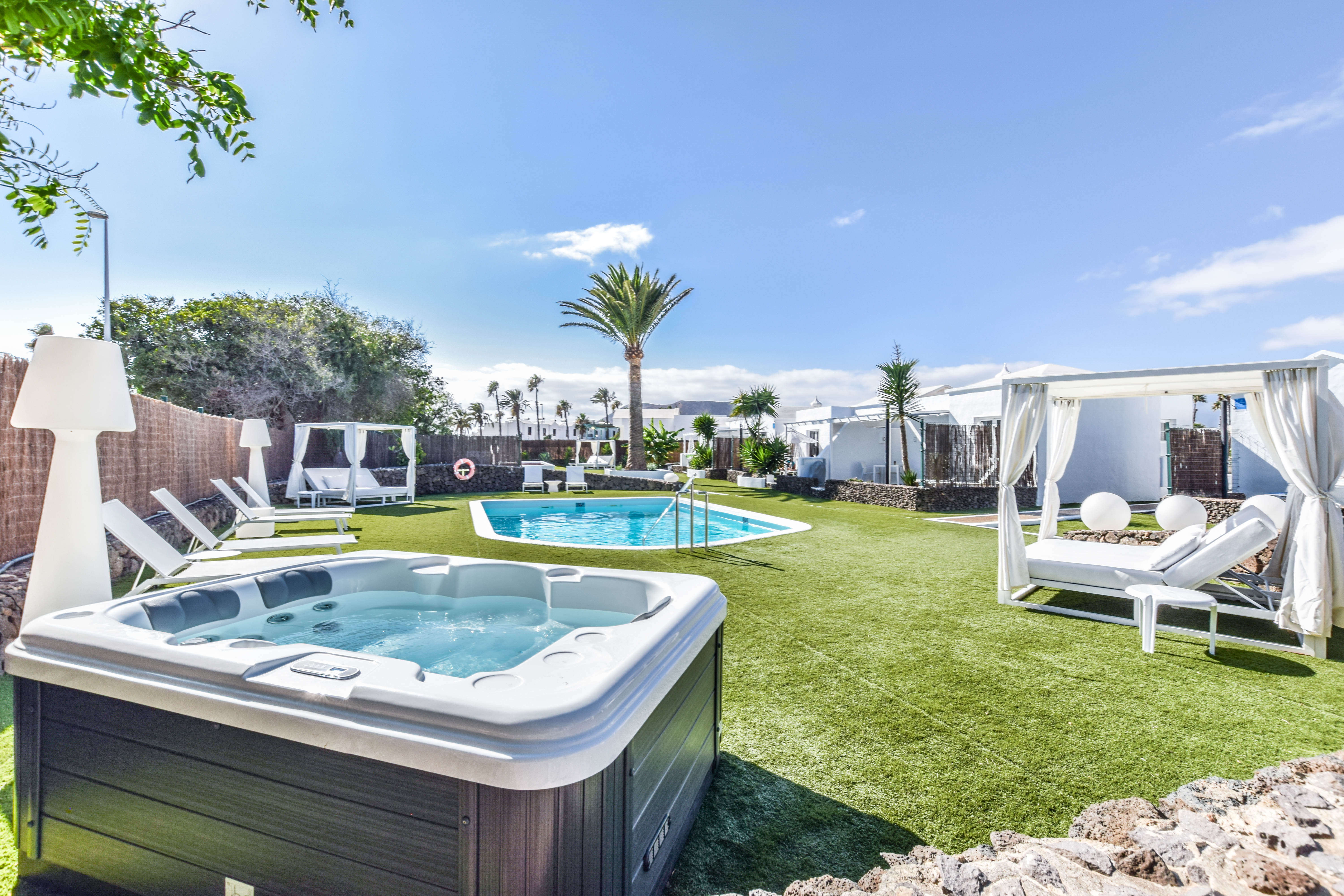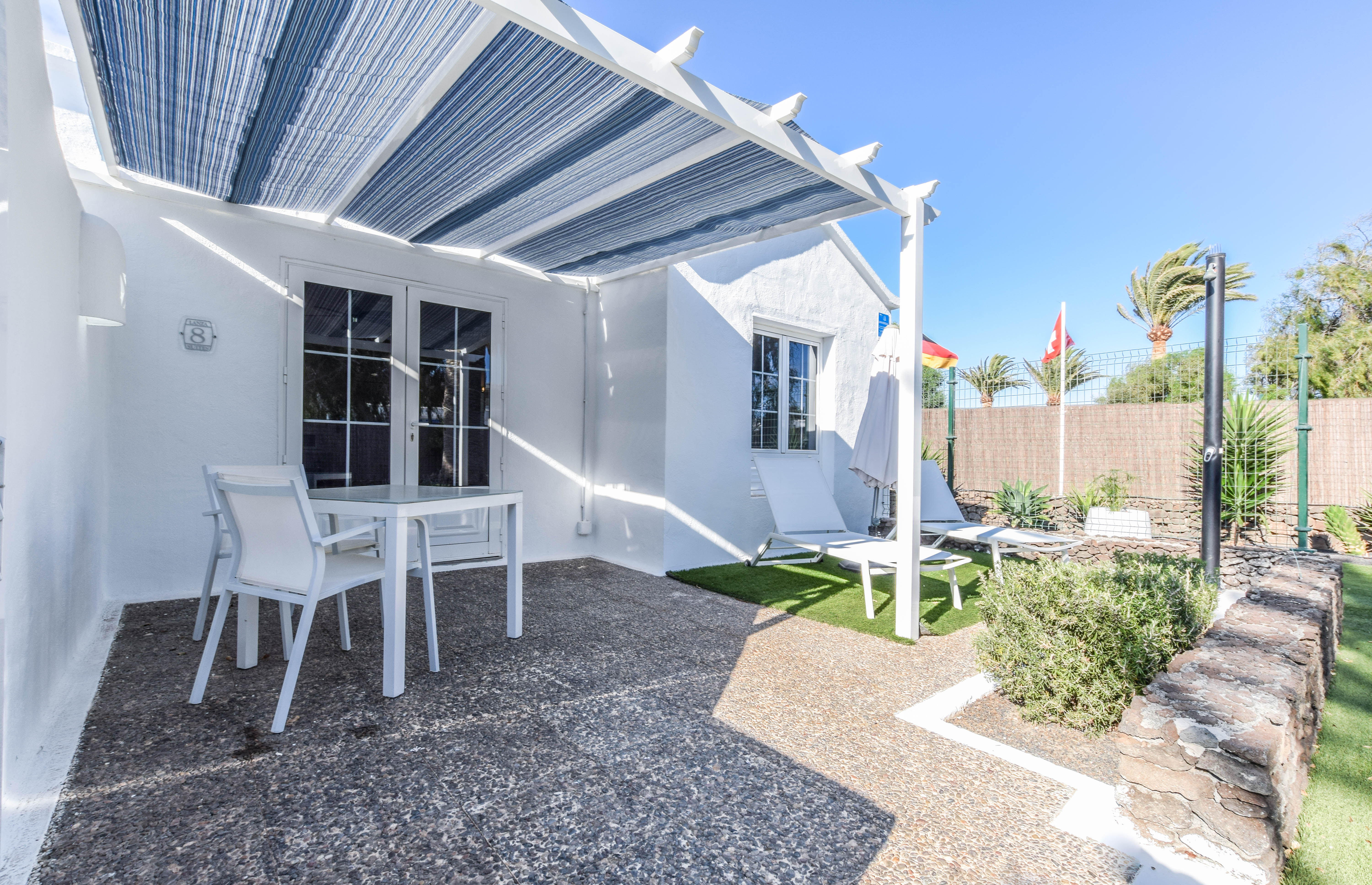Tämä kutsuva turistilomakompleksi sijaitsee Playa Blancassa, Lanzarotella. Vain 150 metrin etäisyydellä tästä kompleksista löydät Playa Flamingo Beachin, ja kaupungin keskusta on saavutettavissa vain 200 metrin matkan päässä. Tämä kompleksialue käsittää yhteensä 16 mukavaa ja viihtyisää bungalowia, jotka on täysin uusittu ja remontoitu vuonna 2018, jotta ne tarjoaisivat modernin ja raikkaan tunnelman vierailijoilleen. Kohde on tarkoitettu ainoastaan aikuisille, eikä lemmikkieläimiä voi tuoda mukana. Jokaisessa bungalowissa on miellyttävä näkymä puutarhaan, tilava oleskelutila-keittiö, erillinen makuuhuone, moderni kylpyhuone sekä viihtyisä terassi. Mukavuutta lisäävät ilmastointi ja lämmitys, viinijääkaappi, kätevä pesukone, kapselikahvinkeitin sekä taulutelevisio, joka löytyy sekä oleskelutilasta että makuuhuoneista. Lisäksi käytössäsi on silitysrauta ja -lauta, maksuton WiFi-yhteys sekä miellyttävä tervetuliaispaketti saapumisen yhteydessä. Kompleksin alueella on myös yhteinen suolaisen veden uima-allas, joka on miellyttävästi lämmitetty syys- ja talvikauden aikana. Huomioitavaa on, että paikan päällä ei ole ympärivuorokautista vastaanottopalvelua saatavilla. Tämän vuoksi on erittäin tärkeää, että otat yhteyttä majoituspaikkaamme viimeistään viikkoa ennen suunniteltua saapumistasi, jotta järjestelyt sujuvat vaivattomasti.