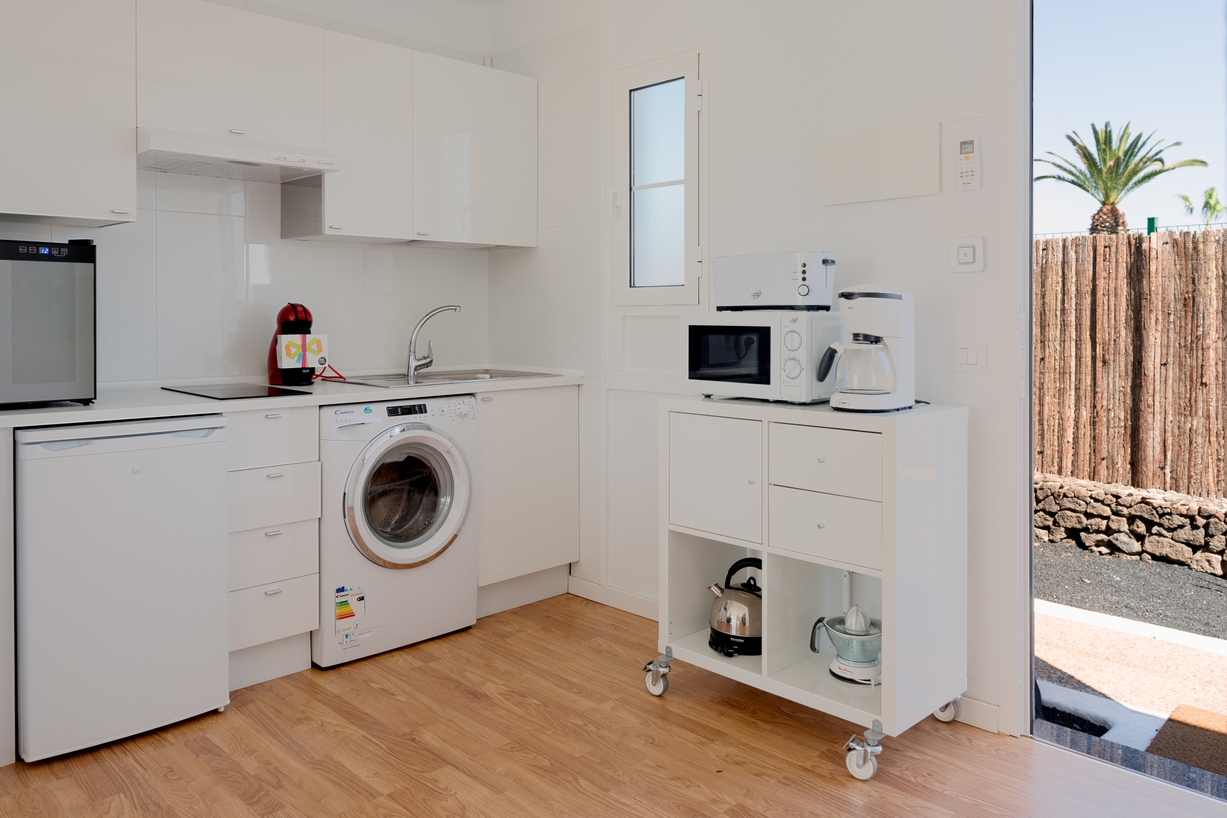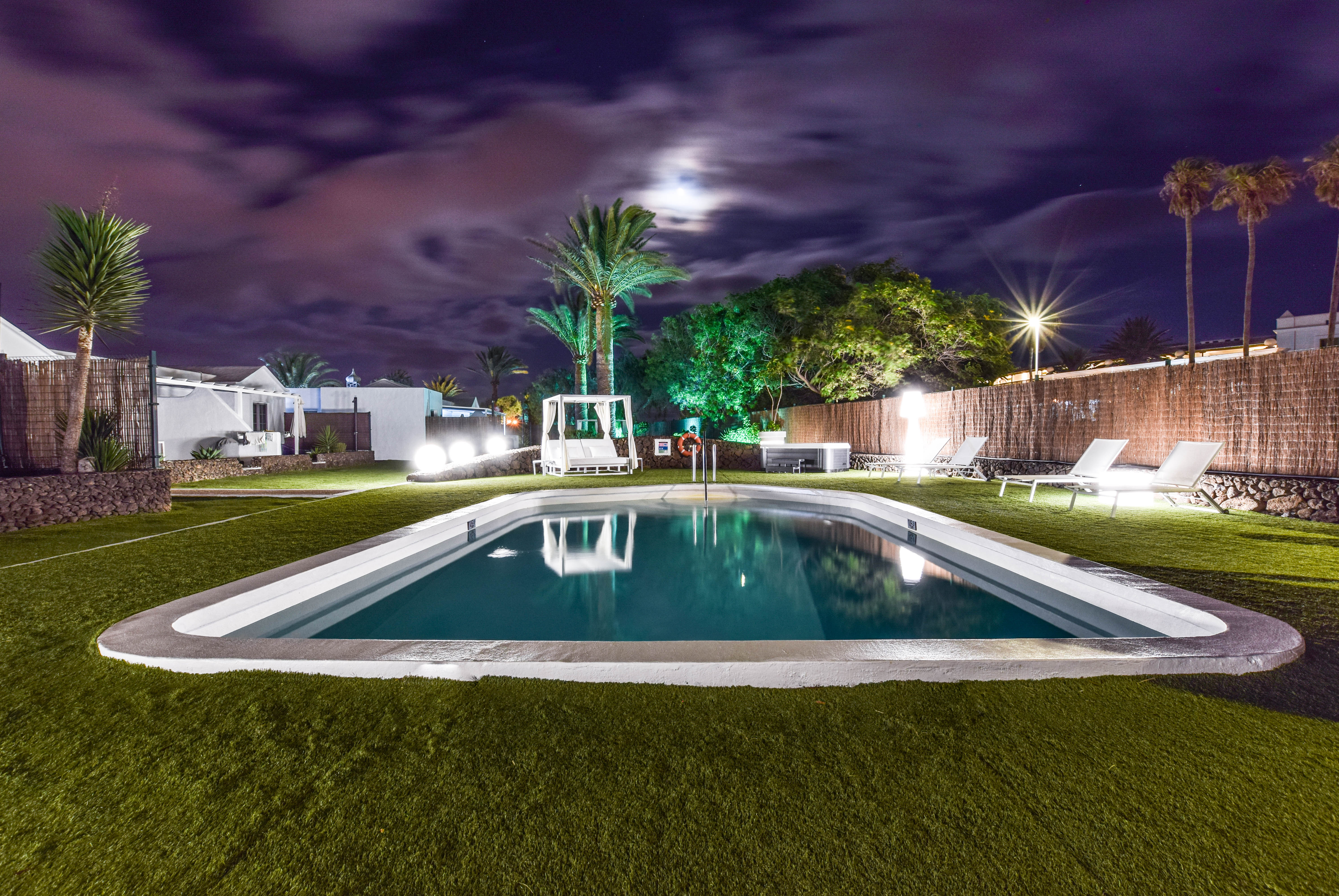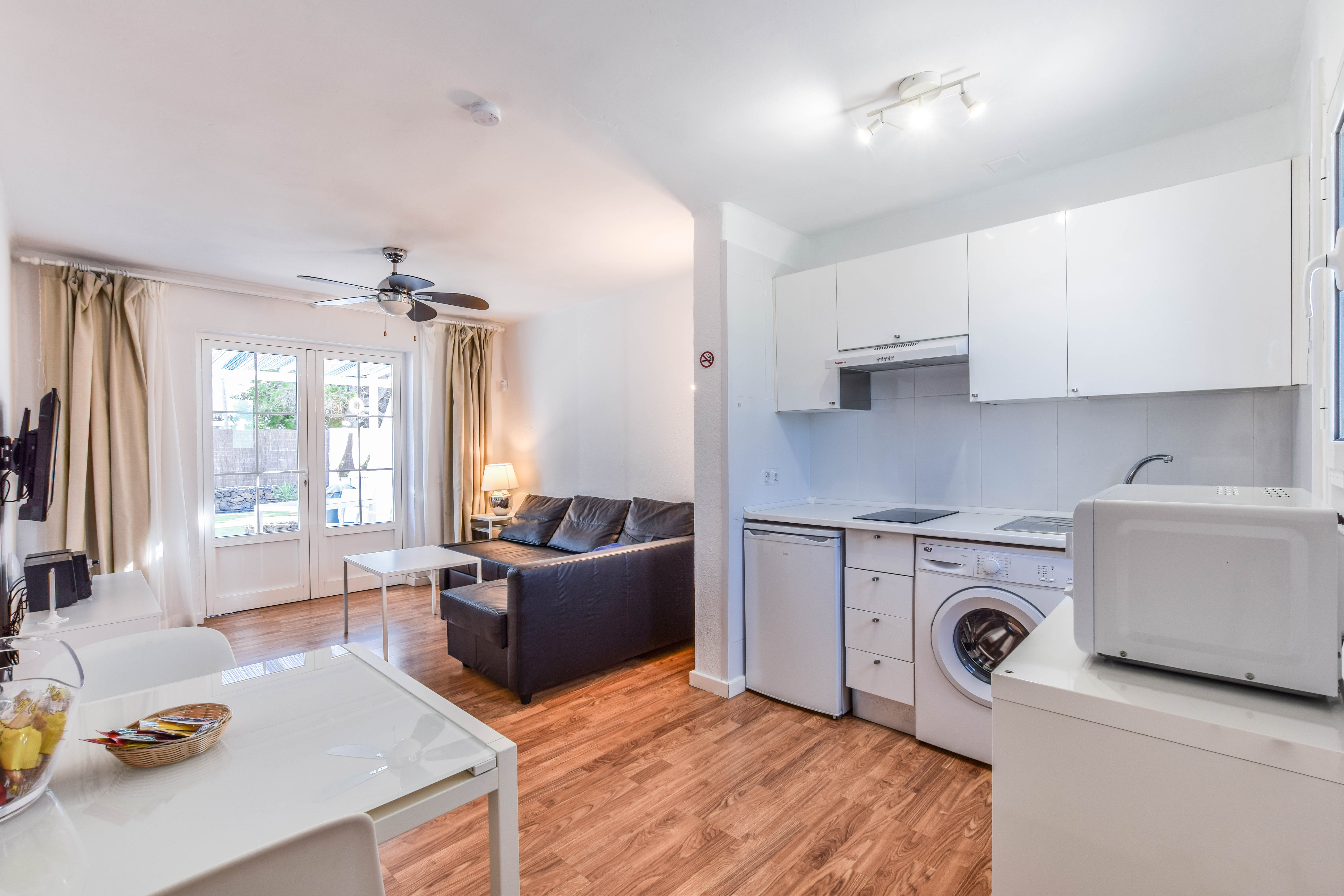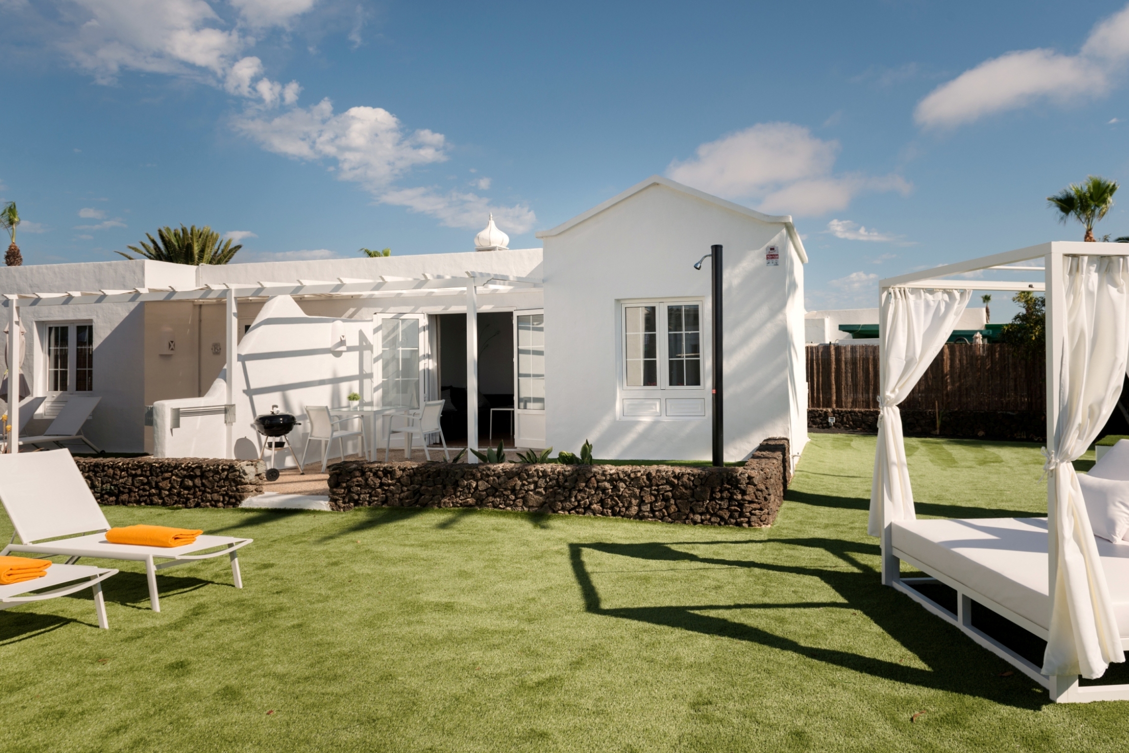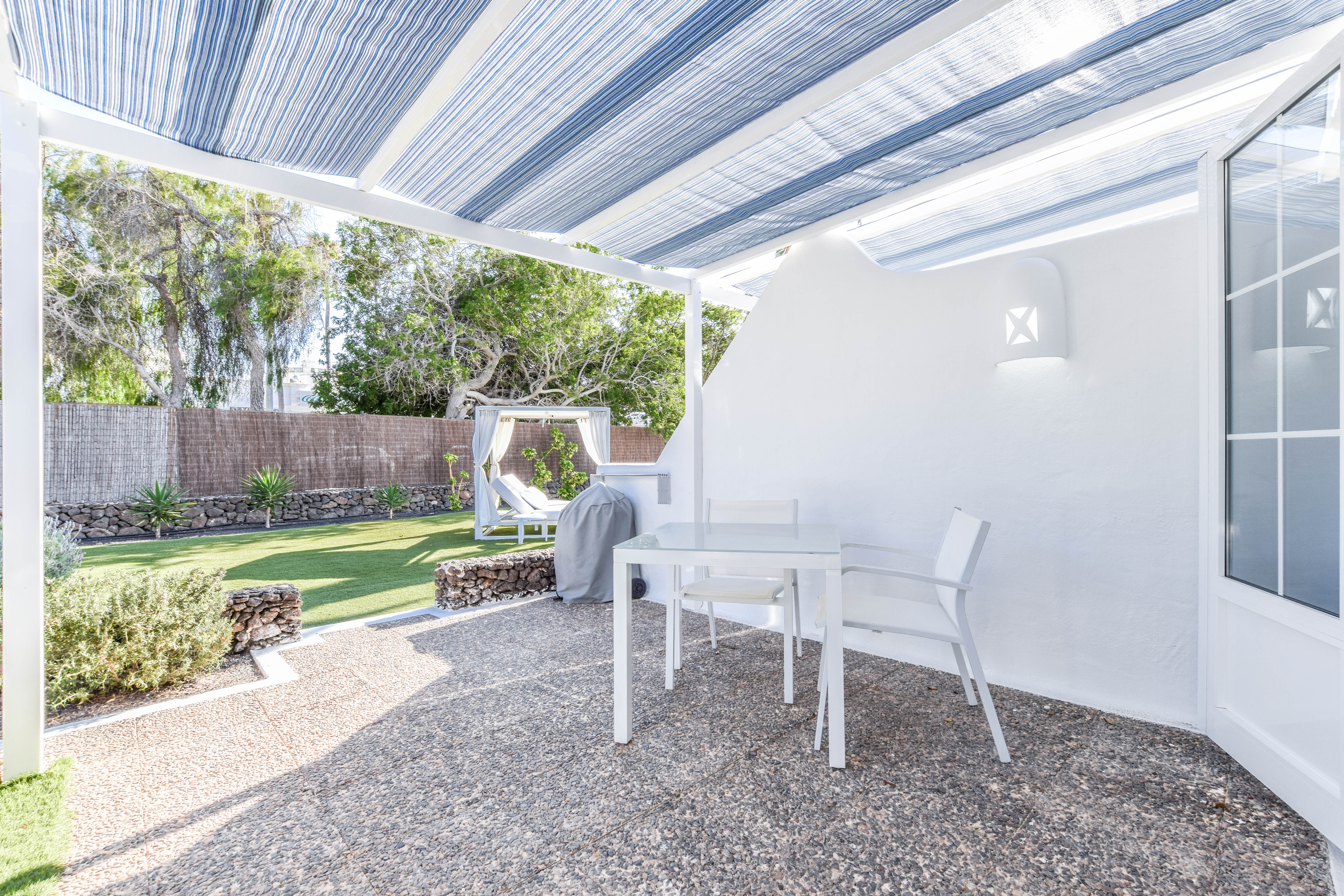 Tämä kutsuva turistilomakompleksi sijaitsee Playa Blancassa, Lanzarotella. Vain 150 metrin etäisyydellä tästä kompleksista löydät Playa Flamingo Beachin, ja kaupungin keskusta on saavutettavissa vain 200 metrin matkan päässä. Tämä kompleksialue käsittää yhteensä 16 mukavaa ja viihtyisää bungalowia, jotka on täysin uusittu ja remontoitu vuonna 2018, jotta ne tarjoaisivat modernin ja raikkaan tunnelman vierailijoilleen. Kohde on tarkoitettu ainoastaan aikuisille, eikä lemmikkieläimiä voi tuoda mukana. Jokaisessa bungalowissa on miellyttävä näkymä puutarhaan, tilava oleskelutila-keittiö, erillinen makuuhuone, moderni kylpyhuone sekä viihtyisä terassi. Mukavuutta lisäävät ilmastointi ja lämmitys, viinijääkaappi, kätevä pesukone, kapselikahvinkeitin sekä taulutelevisio, joka löytyy sekä oleskelutilasta että makuuhuoneista. Lisäksi käytössäsi on silitysrauta ja -lauta, maksuton WiFi-yhteys sekä miellyttävä tervetuliaispaketti saapumisen yhteydessä. Kompleksin alueella on myös yhteinen suolaisen veden uima-allas, joka on miellyttävästi lämmitetty syys- ja talvikauden aikana. Huomioitavaa on, että paikan päällä ei ole ympärivuorokautista vastaanottopalvelua saatavilla. Tämän vuoksi on erittäin tärkeää, että otat yhteyttä majoituspaikkaamme viimeistään viikkoa ennen suunniteltua saapumistasi, jotta järjestelyt sujuvat vaivattomasti.
