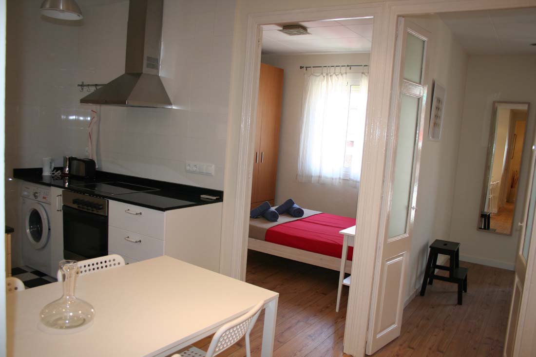 Leiligheten ligger i området Poble Sec ved El Paralell, og krysser du den kommer du til La Rambla. Du tar deg enkelt til Montjuic-fjellet som ligger i nærheten. Der finner du bl.a. den «olympiske ringen» etter OL som ble holdt i 1992. I området er det mange gode og enkle typiske tapasbarer som er rimelige, og her får du mer kvalitet for pengene enn i de typiske turistområdene.