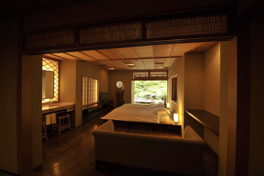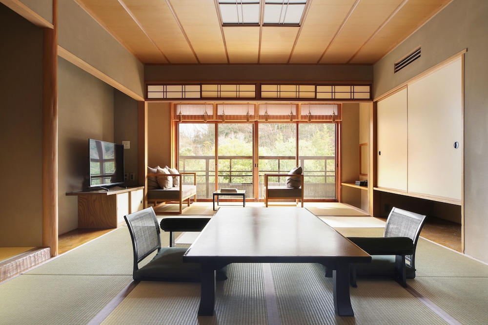 Käytössäsi on kuivapesula-/pesulapalvelut, ympäri vuorokauden auki oleva vastaanotto ja pyykinpesutilat. Tämä ryokan tarjoaa asiakkailleen 16 neliömetriä kokoustiloja, joihin kuuluu konferenssitila ja kokoushuoneita. Hintaan kuuluu kuljetukset rautatieasemalta majoituspaikkaan, ja saatavilla on myös ilmainen valet-pysäköinti. Voit rentoutua täyden palvelun kylpylässä, jonka palveluihin sisältyvät muun muassa hierontapalvelut, vartalohoidot ja kasvohoidot. Paikan päällä on lisäksi kuumia lähteitä, yökerho sekä sisäuima-allas. Tämän ryokanin palveluihin kuuluu myös ilmainen langaton internetyhteys ja kiertoajelu-/lippupalvelu. Ryokanin ravintola on hyvä paikka illallisen nauttimiseen, tai voit hyödyntää huonepalvelun (rajoitettuina aikoina). Päätä päiväsi nauttimalla muutama drinkki baarissa. Ilmainen täysi aamiainen tarjoillaan päivittäin klo 8.00–10.00.