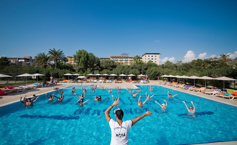When you stay at M.C Mahberi Beach Hotel – All Inclusive in Alanya, you'll be by the sea, within a 15-minute drive of Kleopatra Beach and Alanya Aquapark. This upscale hotel is 10.8 mi (17.4 km) from Alanya Castle and 1.6 mi (2.5 km) from Alaettinoglu Cultural Park. Make yourself at home in one of the 320 air-conditioned guestrooms. Rooms have private balconies. Wireless internet access (surcharge) keeps you connected, and satellite programming is available for your entertainment. Partially open bathrooms with bathtubs or showers feature complimentary toiletries and hair dryers. Distances are displayed to the nearest 0.1 mile and kilometer.