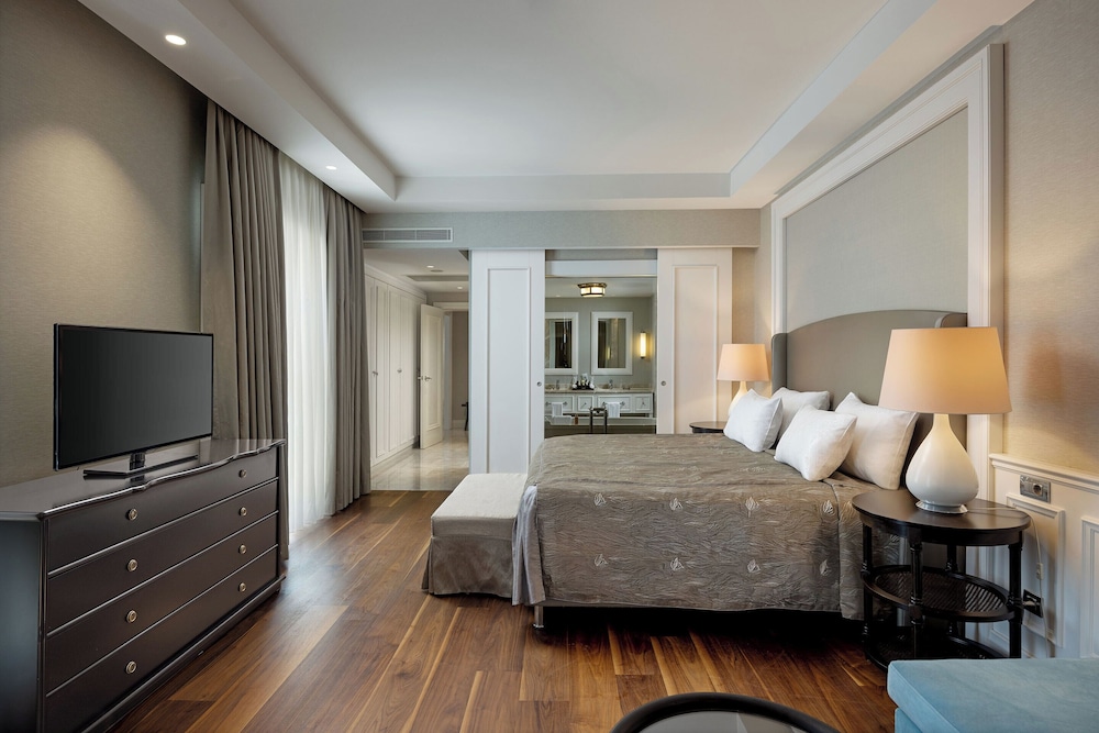 National Golf Club sijaitsee 3 minuutin ajomatkan päässä ja Cullinan Links Golf Club 7 minuutin ajomatkan päässä majoituspaikasta. Tämä all inclusive -tyyppinen hotelli sijaitsee 4,3 km:n päässä kohteesta Antalya Golf Club ja 5,6 km:n päässä kohteesta Carya Golf Club. Kaikissa 594 huoneessa on ilmastointi, ilmaiset minibaarituotteet sekä LED-TVt. Mukavuuksiin kuuluu satelliittikanavat sekä ilmainen langaton internetyhteys. Kylpyhuoneesta löytyy ilmaiset hygieniatuotteet ja hiustenkuivaaja. Varusteluun kuuluu puhelin, tallelokero ja työpöytä. Käytössäsi on business center, kuivapesula-/pesulapalvelut ja ympäri vuorokauden auki oleva vastaanotto. Tämä hotelli tarjoaa asiakkailleen seuraavat kokoustilat: konferenssikeskus ja 18 kokoushuonetta. Käytössäsi on kuljetukset lentokentältä majoituspaikkaan (saatavilla ympäri vuorokauden). Jos saavut autolla, voit pysäköidä helposti, sillä ilmainen valet-pysäköinti kuuluu myös palveluihin. Voit rentoutua täyden palvelun kylpylässä, jonka palveluihin sisältyvät muun muassa hierontapalvelut, vartalohoidot ja kasvohoidot. Vietä rento päivä rannalla. Jos haluat vaihtelua auringonottoon, hotellista löytyvät myös seuraavat palvelut: yökerho ja ilmainen vesipuisto. Tämän hotellin palveluihin kuuluu muun muassa ilmainen langaton internetyhteys, concierge-palvelut ja lastenvahti (lisämaksusta). Ilmaisten rantakuljetusten avulla pääset helposti nauttimaan tyrskyistä ja hiekasta. Nauti ruoista hotellin ravintolassa nimeltä Main Restaurant, joka on yksi majoituspaikan 15 ravintolasta. Tämän ravintolan erikoisuuksiin kuuluu kansainvälinen keittiö. Palveluihin kuuluu myös ympärivuorokautinen huonepalvelu ja 2 kahvilaa. Tässä hotellissa on allasbaari. Jos mielesi tekee raikasta juotavaa, kokeile myös palveluihin kuuvaa 14 baaria tai 3 rantabaaria. Ilmainen buffetaamiainen tarjoillaan päivittäin klo 8.00–11.00. Seuraavat tilat on suljettu talvellassa: