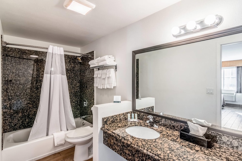 Quality Inn & Suites near Downtown Bakersfield sijaitsee keskustassa, ja Golden West Casino ja Kern County Veterans Memorial 5 minuutin ajomatkan päässä. Tämä hotelli sijaitsee 2,4 km:n päässä kohteesta McMurtrey Aquatic Center (stadion) ja 2,7 km:n päässä kohteesta Bakersfield Museum of Art. Kaikkien 88 huoneen varusteluun kuuluu mikroaaltouuni ja LED-TVt. Käytössäsi on kaapelikanavat ja ilmainen internetyhteys (langaton ja kiinteä). Huoneissa on oma kylpyhuone, ja sen varusteluun kuuluu kylpyamme tai suihku, ilmaiset hygieniatuotteet ja hiustenkuivaaja. Varusteluun kuuluu työpöytä, oleskelualue ja puhelin (ilmaiset paikallispuhelut). Käytössäsi on business center, express-uloskirjautuminen ja ympäri vuorokauden auki oleva vastaanotto. Palveluihin kuuluu ilmainen pysäköinti. Seuraavat palvelut ovat saatavilla: ulkouima-allas, ilmainen langaton internetyhteys ja myyntiautomaatti. Ilmainen mannermainen aamiainen tarjoillaan päivittäin.