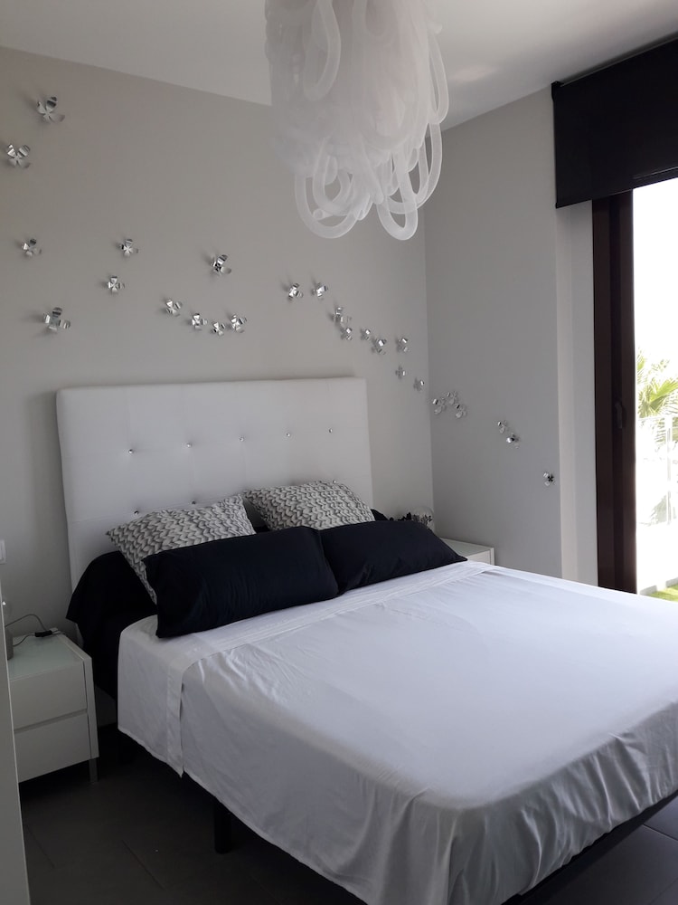 Huoneisto sijaitsee rannalla, ja Canada Marsan puisto ja Aquapark Rojales -vesipuisto sijaitsevat 15 minuutin ajomatkan päässä. Tämä golfin pelaamiseen soveltuva huoneisto sijaitsee 20,5 km:n päässä kohteesta Zenia Boulevardin ostoskeskus ja 21,4 km:n päässä kohteesta La Zenian ranta. Tämä ilmastoitu huoneisto tarjoaa käyttöösi keittiö, jossa on täysikokoinen jääkaappipakastin ja uuni. Huoneessa on kalustettu parveke. Ilmainen langaton internetyhteys pitää sinut yhteydessä ja taulutelevisio tarjoaa viihdykettä. Mukavuuksiin kuuluu mikroaaltouuni, vedenkeitin ja siivouspalvelu kerran yöpymisen aikana. Etäisyydet pyöristetään lähimpään 0,1 mailiin ja kilometriin.