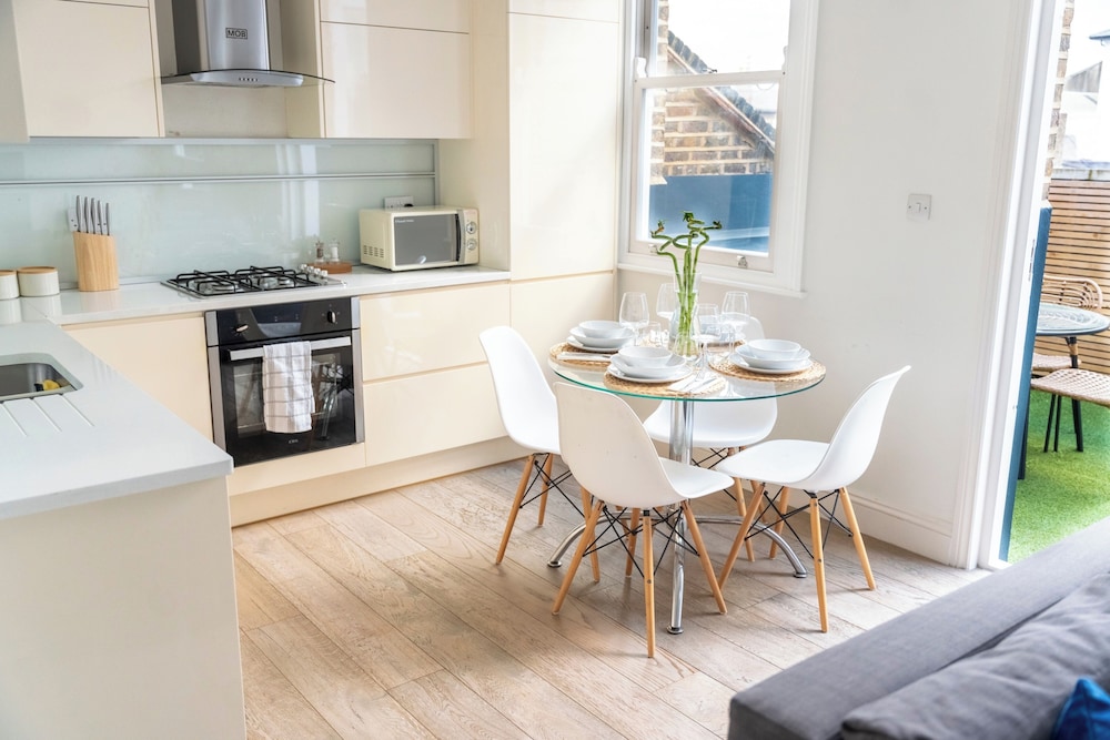 Clapham Common sijaitsee 3 minuutin ja London Eye 10 minuutin ajomatkan päässä. Tämä huoneisto sijaitsee 5,8 km:n päässä kohteesta Big Ben ja 6,2 km:n päässä kohteesta Buckinghamin palatsi. Tässä majoituspaikassa on 4 viihtyisää huonetta. Huoneiden varusteluun kuuluu muun muassa keittiö, jossa on jääkaappi ja uuni. Ilmainen langaton internetyhteys pitää sinut yhteydessä verkkoon. Huoneissa on oma kylpyhuone, ja sen varusteluun kuuluu suihkun ja kylpyammeen yhdistelmä, syvä kylpyamme ja hiustenkuivaaja. Huoneissa on mikroaaltouuni ja vedenkeitin. Etäisyydet pyöristetään lähimpään 0,1 mailiin ja kilometriin.