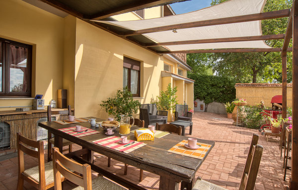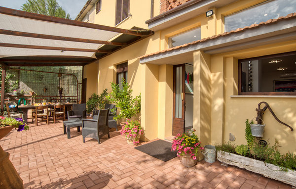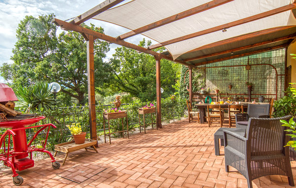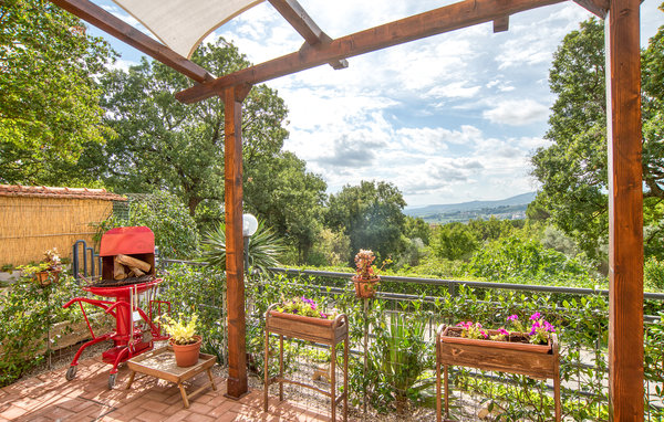 The covered terrace with pergola offers you the most beautiful view over large parts of the great Italian countryside. The wooden ceilings, exposed beams and the small fireplace in the living room conjure up a cozy and relaxing athmosphere.