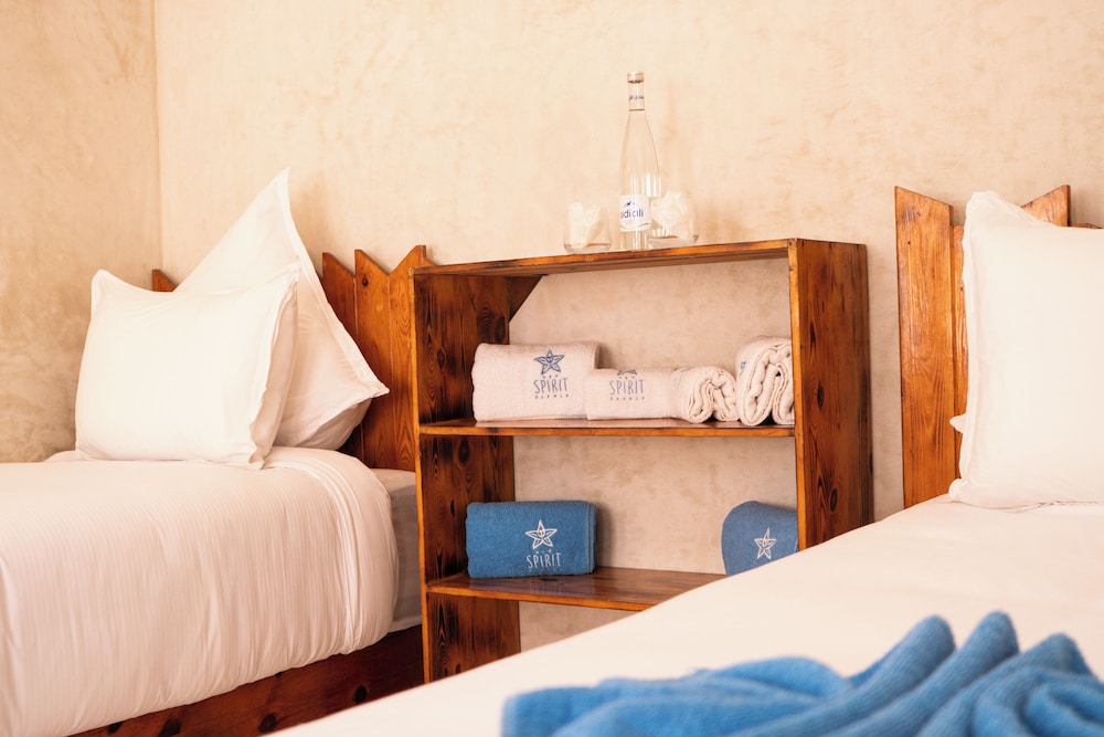 Dakhlan lahti ja Dakhlan konferenssikeskus sijaitsevat 15 minuutin ajomatkan päässä majoituspaikasta. Tämä hotelli sijaitsee 24,1 km:n päässä kohteesta Al Kassam -moskeija ja 24,8 km:n päässä kohteesta Dakhlan yleinen puutarha. Tässä majoituspaikassa on 37 kodikasta huonetta. Ilmainen langaton internetyhteys pitää sinut yhteydessä verkkoon. Käytössäsi on kylpyhuone, jossa on suihku. Huoneet siivotaan päivittäin. Huoneissa on ilmainen pullovesi. Asiakkaiden käytössä on lentokenttäkuljetukset (saatavilla ympäri vuorokauden) ilmaiseksi. Nauti auringosta hotellin yksityisellä rannalla. Myös yökerho ja ulkouima-allas kuuluvat palveluihin. New Spirit Dakhla tarjoaa asiakkailleen ravintolan ja välipalabaarin/delin. Käytössäsi on rantabaari ja allasbaari. Jos mielesi tekee raikasta juotavaa, kokeile myös palveluihin kuuvaa 2 baaria. Ilmainen buffetaamiainen tarjoillaan päivittäin klo 8.30–9.30.