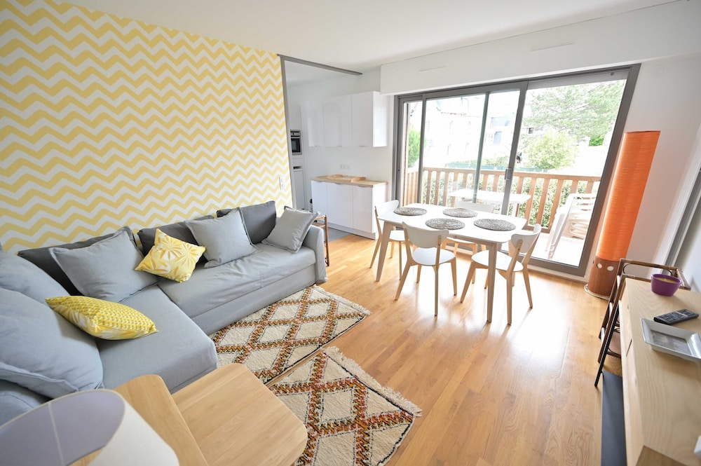 Saint-Augustinin kirkko ja Deauvillen olympia-allas sijaitsevat 5 minuutin kävelymatkan päässä majoituspaikasta. Tämä huoneisto sijaitsee 16 km:n päässä kohteesta Honfleurin vanha stama ja 0,6 km:n päässä kohteesta Centre International de Deauville. Tee olosi kotoisaksi huoneistossasi. Digitaalikanavat viihdyttävät yöpymisen aikana. Mukavuuksiin kuuluu pyykinpesukone/kuivausrumpu ja silitysrauta/-lauta. Etäisyydet pyöristetään lähimpään 0,1 mailiin ja kilometriin.