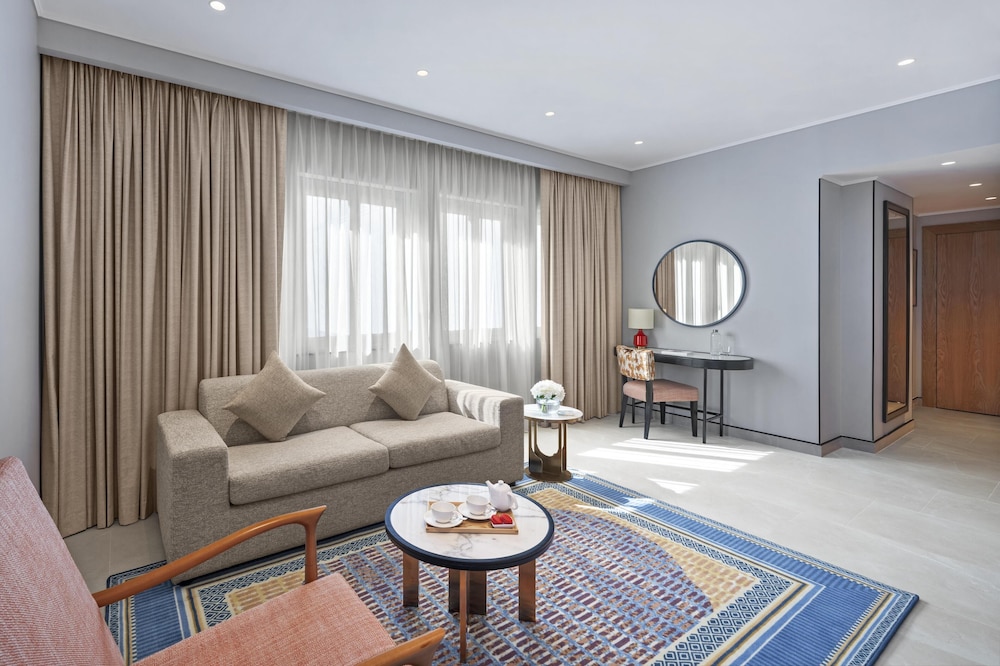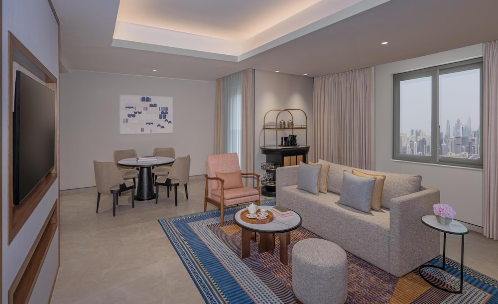 Ibn Battuta Mall (ostoskeskus) sijaitsee 1 minuutin ajomatkan päässä ja Skydive Dubai 9 minuutin ajomatkan päässä majoituspaikasta. Tämä rannalla sijaitseva hotelli sijaitsee 13,2 km:n päässä kohteesta Ski Dubai (hiihtokeskus) ja 13,3 km:n päässä kohteesta Mall of the Emirates. Tässä majoituspaikassa on 396 yksilöllisesti sisustettua huonetta, joiden varusteluun kuuluu muun muassa minibaari ja LCD-televisio. Varusteluun kuuluu sänky, jossa on untuvapeitot ja ylelliset vuodevaatteet. Käytössäsi on satelliittikanavat ja ilmainen internetyhteys (langaton ja kiinteä). Kylpyhuoneesta löytyy erillinen kylpyamme ja suihku, ilmaiset hygieniatuotteet ja bidee. Etäisyydet pyöristetään lähimpään 0,1 mailiin ja kilometriin.