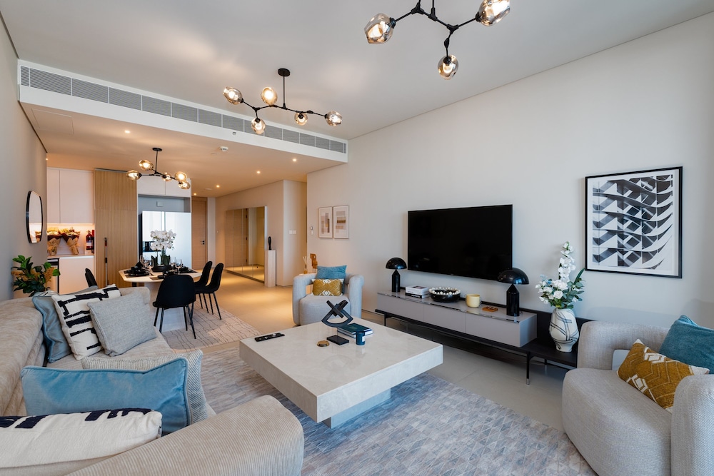 The Walk -kävelykatu sijaitsee kivenheiton päässä ja Marinan ranta puolestaan 7 minuutin kävelymatkan päässä. Tämä huoneisto sijaitsee 10,7 km:n päässä kohteesta Burj al-arab ja 12,1 km:n päässä kohteesta Mall of the Emirates. Tässä majoituspaikassa on 6 kodikasta huonetta. Etäisyydet pyöristetään lähimpään 0,1 mailiin ja kilometriin.
