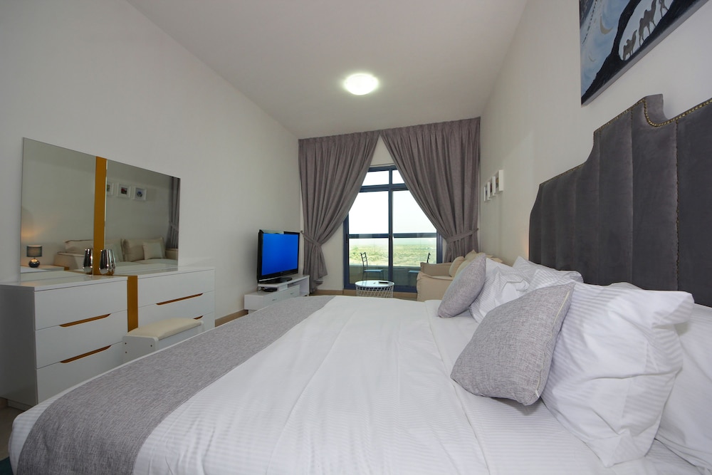 Global Village ja Zayedin yliopisto sijaitsevat 15 minuutin ajomatkan päässä majoituspaikasta. Tämä huoneisto sijaitsee 19,6 km:n päässä kohteesta Dubai Mall ja 19,7 km:n päässä kohteesta Dubai World Trade Centre. Tämä ilmastoitu huoneisto tarjoaa käyttöösi keittiö, jossa on jääkaappi ja uuni. Huoneessa on parveke. 40-tuumainen LCD-televisio, jossa on kaapelikanavat, tarjoaa viihdykettä ja ilmainen langaton internetyhteys takaa, että voit pysyä yhteydessä. Mukavuuksiin kuuluu mikroaaltouuni, vedenkeitin ja siivouspalvelu päivittäin. Etäisyydet pyöristetään lähimpään 0,1 mailiin ja kilometriin.