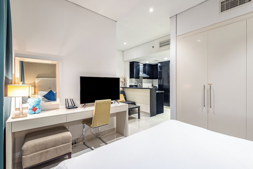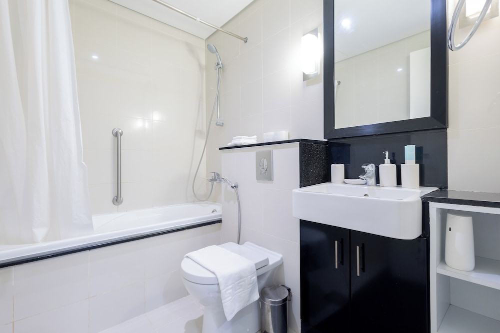 Huoneisto sijaitsee keskustassa, ja Burj Khalifa ja Dubai Mall 5 minuutin ajomatkan päässä. Tämä huoneisto sijaitsee 5,7 km:n päässä kohteesta Dubai World Trade Centre ja 11,8 km:n päässä kohteesta Dubain poukama. Tämä yksilöllisesti sisustettu huoneisto tarjoaa käyttöösi keittiön, jossa on jääkaappi ja uuni. Huoneessa on parveke. 32-tuumainen äly-TV, jossa on kaapelikanavat, tarjoaa viihdykettä ja ilmainen langaton internetyhteys takaa, että voit pysyä yhteydessä. Mukavuuksiin kuuluu mikroaaltouuni ja kahvin-/vedenkeitin. Etäisyydet pyöristetään lähimpään 0,1 mailiin ja kilometriin.