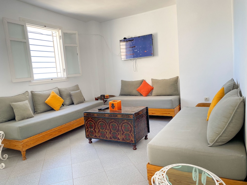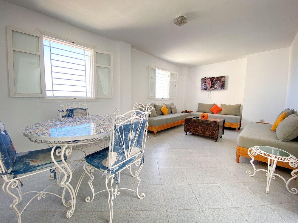 Huoneisto sijaitsee lähellä rantaa, ja El Jadidan linnoitus ja Meren portti sijaitsevat muutaman askeleen päässä. Tämä huoneisto sijaitsee 0,1 km:n päässä kohteesta Portugalilainen säiliö ja 0,7 km:n päässä kohteesta Tazotas. Tämä huoneisto tarjoaa käyttöösi keittiön, jossa on jääkaappi ja uuni. 42-tuumainen plasmatelevisio, jossa on satelliittikanavat, tarjoaa viihdykettä ja ilmainen langaton internetyhteys takaa, että voit pysyä yhteydessä. Mukavuuksiin kuuluu mikroaaltouuni, kahvin-/vedenkeitin ja siivouspalvelu kerran yöpymisen aikana. Etäisyydet pyöristetään lähimpään 0,1 mailiin ja kilometriin.