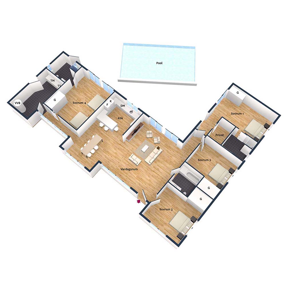 Her er det plass til hele familien, slekten eller venner som ønsker stor plass. Det er innredet i en fin skandinavisk stil, velutstyrt kjøkken, stor luftig stue, 4 soverom samt 3 badeværelser. I villaen finner du alt av utstyr du måtte behøve, som blant annet vaskemaskin, tørketrommel strykejern oppvaskmaskin kaffetrakter og hårføner. WIFI ac kabel-tv stereo gassgrill håndklær sengetøy babyseng barnestol samt badelaken. Nordiske adaptere fins i huset. Huset er også utstyrt med Apple TV og Sonos. Dette kan gjerne brukes men det medfølger ikke teknisk support på dette. Dere får en kontaktperson som er tilstede ved ankomst. Rengjøring er inkludert i prisen. Det er er rolig villaområde og vi leier derfor ikke ut til ungdomsgrupper.