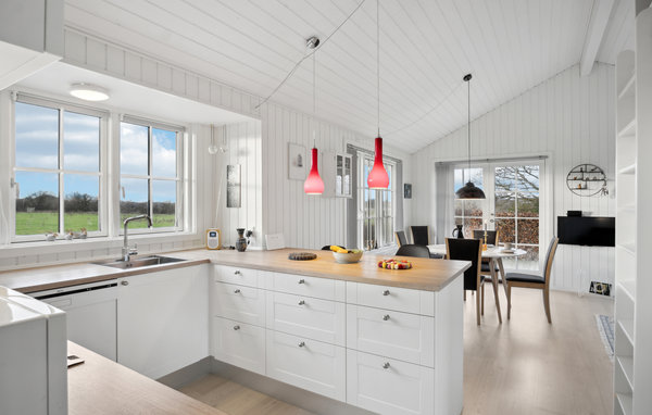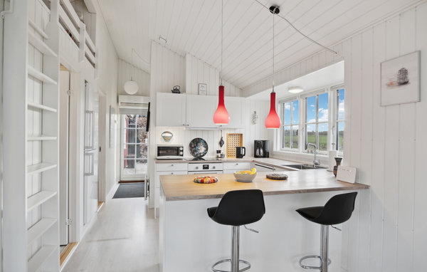 Welcome to this cosy holiday home, which is particularly homely with its Swedish red exterior and bright interior. The cosy house promises you a relaxing stay, as you can let your gaze wander over the fjord through the mullioned windows while relaxing on the sofa. Fire up the wood-burning stove and cook meals together, which you can enjoy at the dining table.