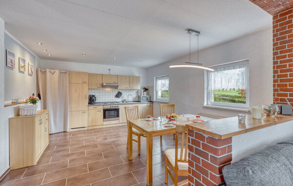 The cosy holiday apartment is located in a barn, which was converted in 2010, separately on the owner's large residential property in the Bansin Dorf district. The Baltic Sea beach is approx. 1.5 km away. The nearby Gothensee is a nature reserve with a wide reed belt and cannot be used for tourism. The apartment has a combined living/dining room (upholstered seating area incl. sofa bed, TV, radio, dining area), bedroom (double bed, cot can be added), kitchenette with electric cooker and microwave, shower/WC, central heating. There is a furnished terrace, barbecue, children's high chair, bicycle storage room, car park and children's playground. The total price includes: Bed linen, towels, water and energy consumption, final cleaning.