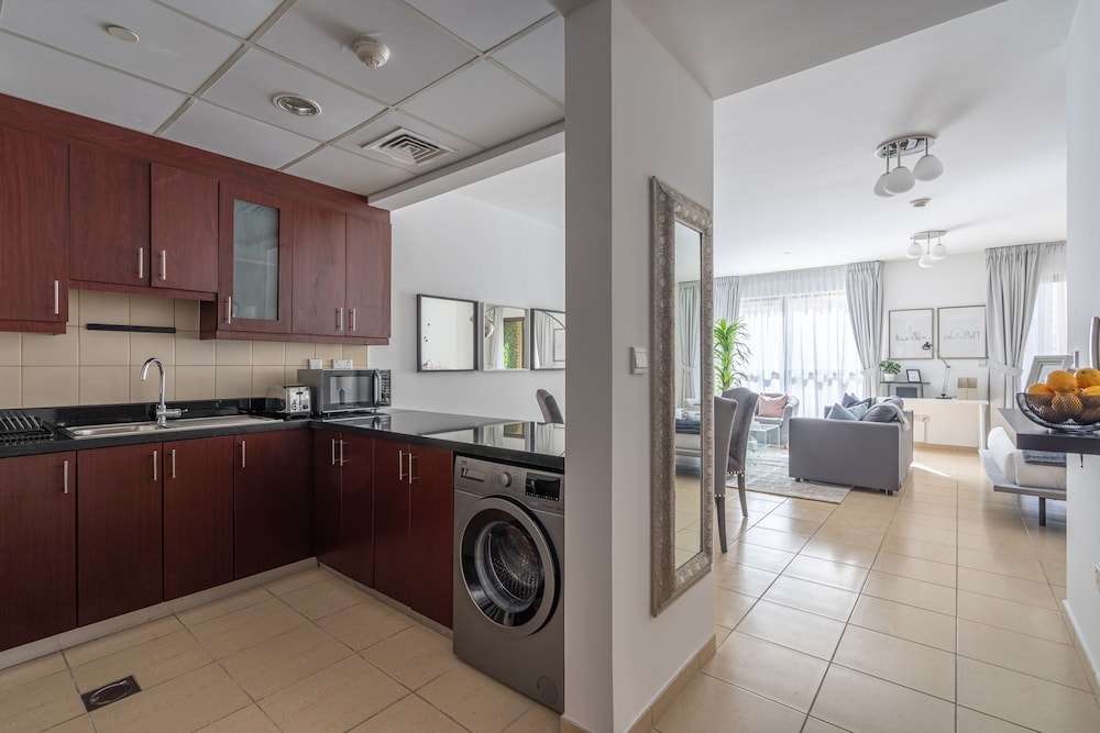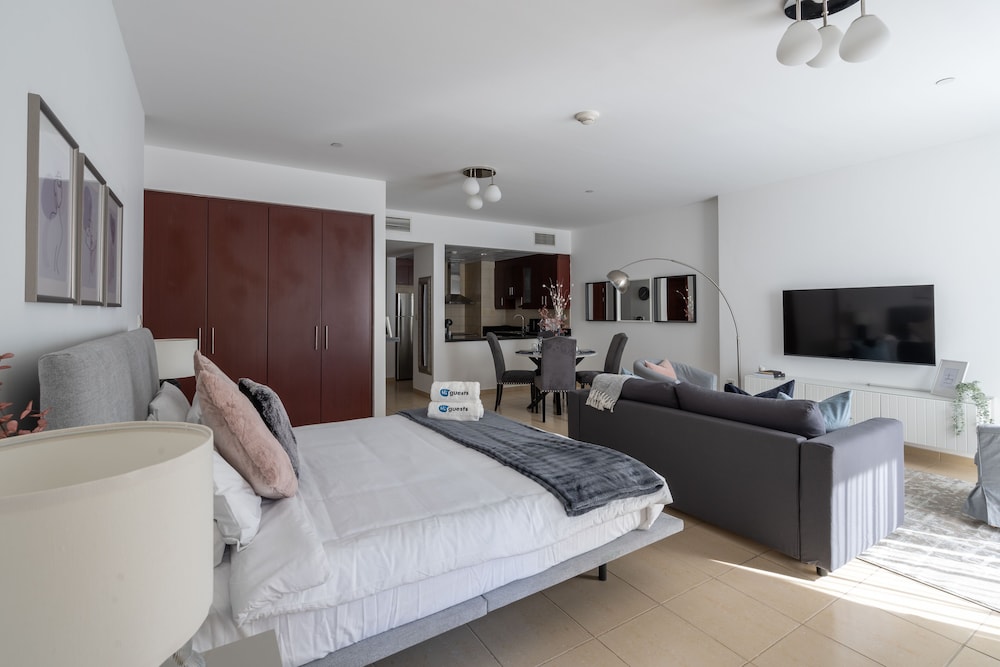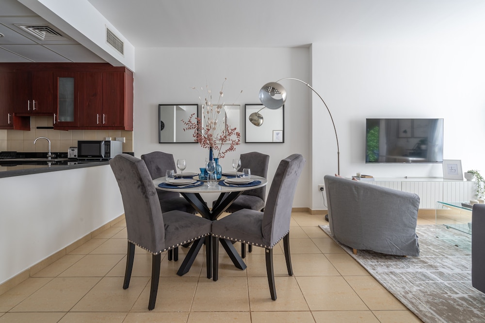 Huoneisto sijaitsee keskustassa, ja Marinan ranta ja The Walk -kävelykatu sijaitsevat muutaman askeleen päässä. Tämä huoneisto sijaitsee 1,2 km:n päässä kohteesta Dubai Marinan ostoskeskus ja 9 km:n päässä kohteesta Burj al-arab. Tämä yksilöllisesti sisustettu huoneisto tarjoaa käyttöösi keittiön, jossa on jääkaappi ja uuni. Huoneessa on parveke. Huoneessa on ilmainen kiinteä sekä langaton internetyhteys, 44-tuumainen taulutelevisio ja satelliittikanavat. Kylpyhuoneesta löytyy suihkun ja kylpyammeen yhdistelmä, syvä kylpyamme ja ilmaiset hygieniatuotteet. Etäisyydet pyöristetään lähimpään 0,1 mailiin ja kilometriin.