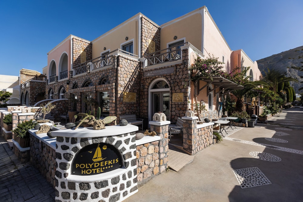 Polydefkis Hotel sijaitsee lähellä rantaa, ja Kamarin uimaranta sijaitsee 1 minuutin ajomatkan päässä ja Muinainen Thira 7 minuutin ajomatkan päässä. Tämä rannalla sijaitseva hotelli sijaitsee 9,6 km:n päässä kohteesta Athiniosin satama ja 7,7 km:n päässä kohteesta Santorínin kaldera. Kaikissa 43 huoneessa on ilmastointi, espressokoneet sekä äly-tv:t. Jokaisessa huoneessa on kalustettu parveke tai terassi. Mukavuuksiin kuuluu kaapelikanavat sekä ilmainen langaton internetyhteys. Huoneissa on oma kylpyhuone, ja sen varusteluun kuuluu suihkun ja kylpyammeen yhdistelmä, hiustenkuivaaja ja tohvelit. Vastaanotto on avoinna rajoitetusti. Hyödynnä lentokenttäkuljetukset (saatavilla ympäri vuorokauden). Hyödynnä kauden mukainen ulkouima-allas ja puutarha. Tämän hotellin palveluihin kuuluu myös ilmainen langaton internetyhteys ja juhlasali. Ilmainen buffetaamiainen tarjoillaan päivittäin klo 7.30–10.30.