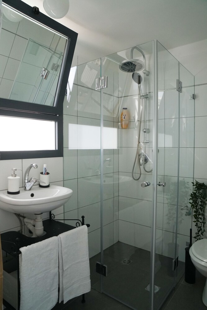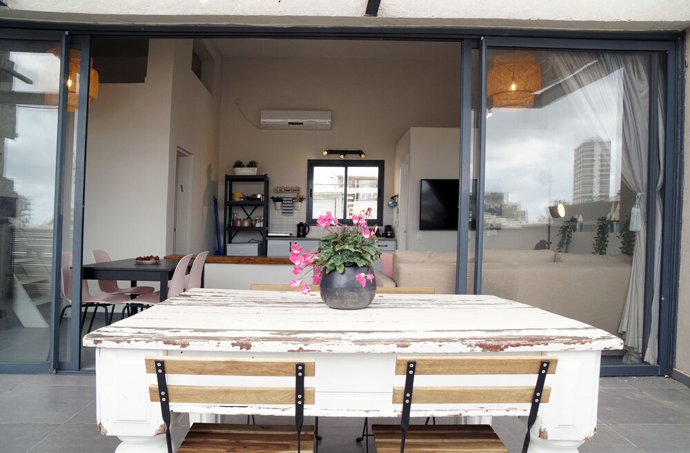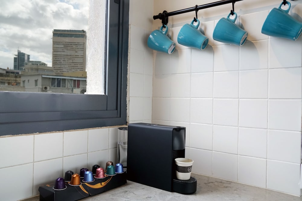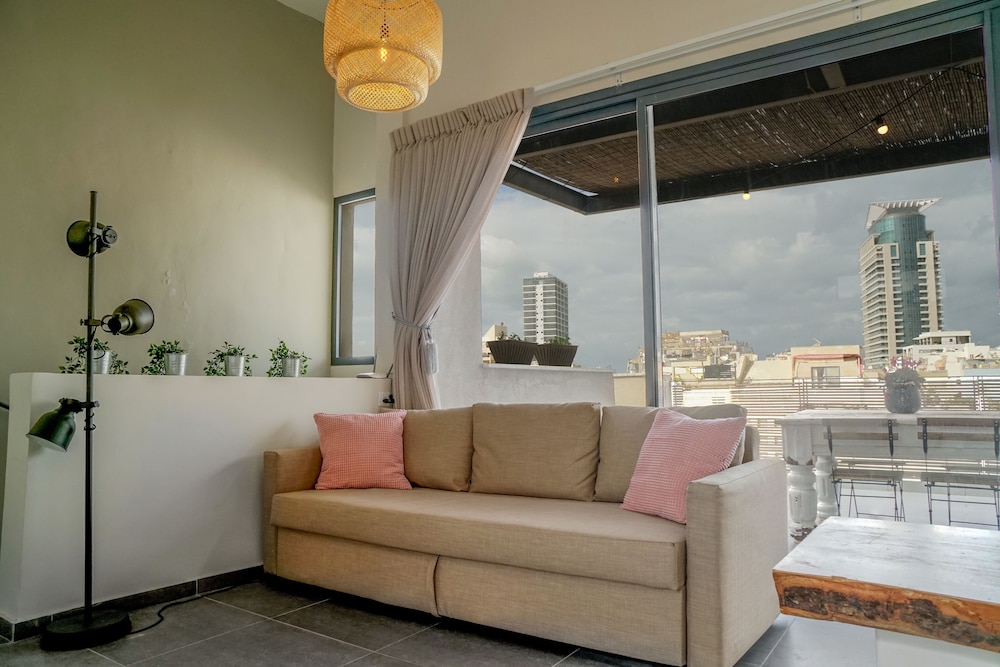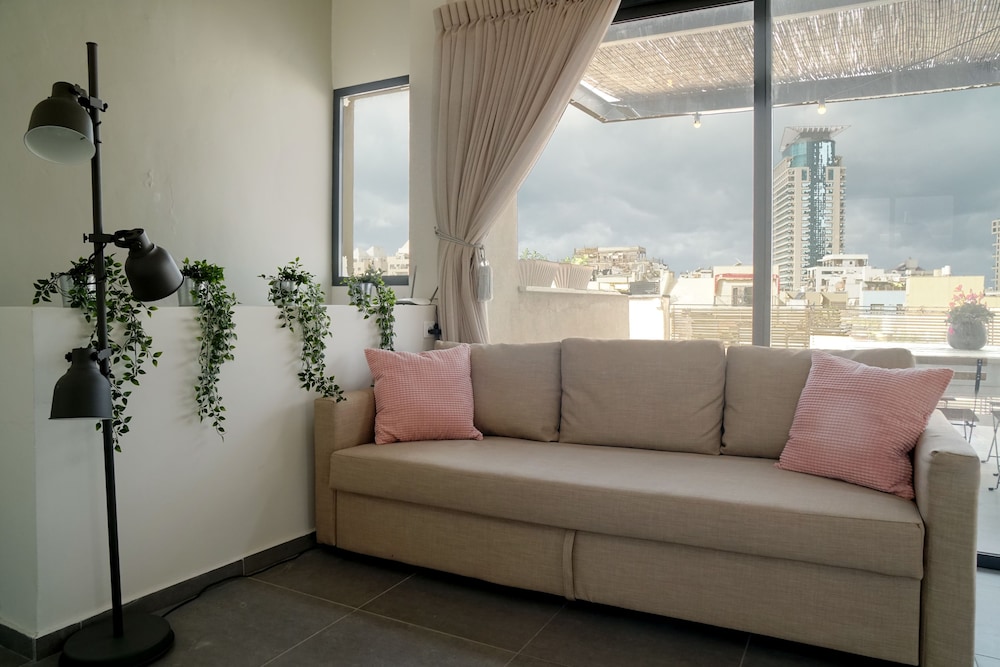 Huoneisto sijaitsee kivenheiton päässä kohteesta Carmelin tori ja vain 4 minuutin kävelymatkan päässä kohteesta Ben Yehudan katu (ostospaikka). Tämä huoneisto sijaitsee 0,5 km:n päässä kohteesta Nachalat Binyamin -kävelykatu ja 0,6 km:n päässä kohteesta Drummersin ranta. Tämä ilmastoitu huoneisto tarjoaa käyttöösi keittiö, jossa on jääkaappi ja liesi. Huoneessa on 60-tuumainen äly-TV, Netflix-palvelu ja ilmainen langaton internetyhteys takaa, että voit pysyä yhteydessä. Mukavuuksiin kuuluu mikroaaltouuni, kahvin-/vedenkeitin ja siivouspalvelu päivittäin. Etäisyydet pyöristetään lähimpään 0,1 mailiin ja kilometriin.