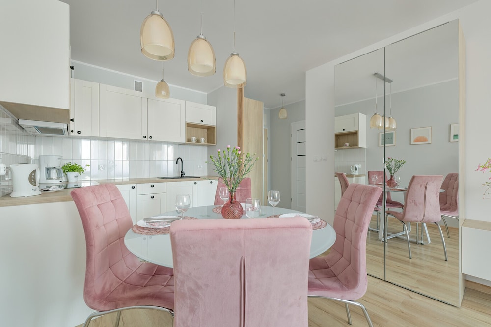 Stefan Zeromskin puisto ja Kołobrzegin vanha kaupungintalo sijaitsevat 5 minuutin kävelymatkan päässä majoituspaikasta. Tämä huoneisto sijaitsee 2,4 km:n päässä kohteesta Patria Colbergiensis -museo ja 2,5 km:n päässä kohteesta Ruutiputki. Tämä huoneisto tarjoaa käyttöösi keittiön, jossa on uuni ja espressokone. Keittonurkkauksessa on astianpesukone. Mukavuuksiin kuuluu työpöytä ja kahvin-/vedenkeitin. Etäisyydet pyöristetään lähimpään 0,1 mailiin ja kilometriin.