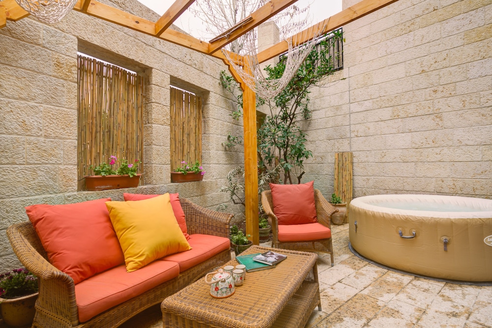 Jacuzzi & Secret Garden in David's Village by FeelHome sijaitsee keskustassa, joten Herzl-vuori löytyy kivenheiton päästä ja Mamillan ostoskeskus puolestaan vain 3 minuutin kävelymatkan päästä. Tämä hotelli sijaitsee 0,6 km:n päässä kohteesta Itsenäisyyspuisto ja 0,8 km:n päässä kohteesta St. Saviour -luostari. Tässä majoituspaikassa on 2 huonetta, joiden varusteluun kuuluu muun muassa yksityiset porealtaat ulkotiloissa. Ilmainen langaton internetyhteys pitää sinut yhteydessä verkkoon. Huone siivotaan päivittäin. Huoneissa on oleskelualue ja vuodesohva. Etäisyydet pyöristetään lähimpään 0,1 mailiin ja kilometriin.